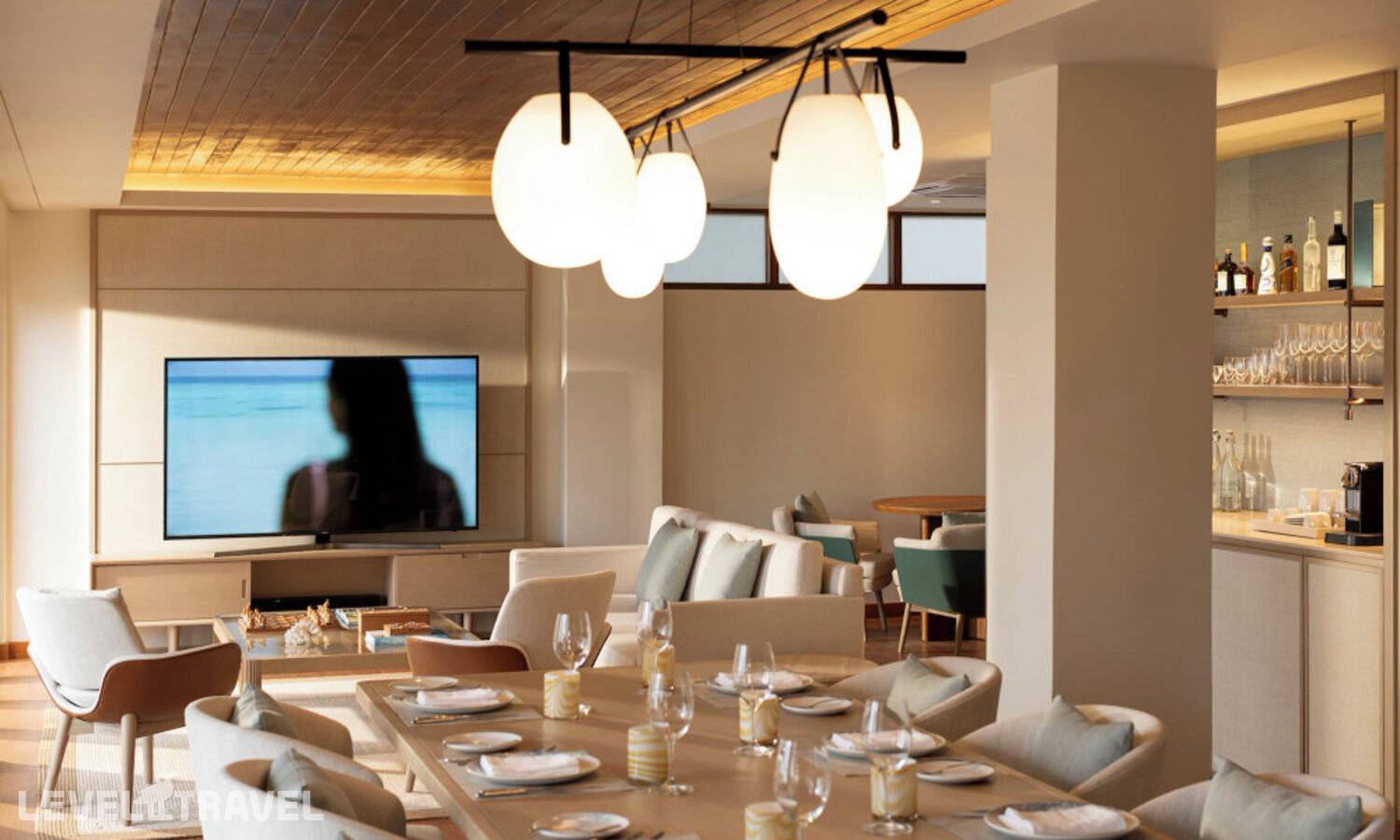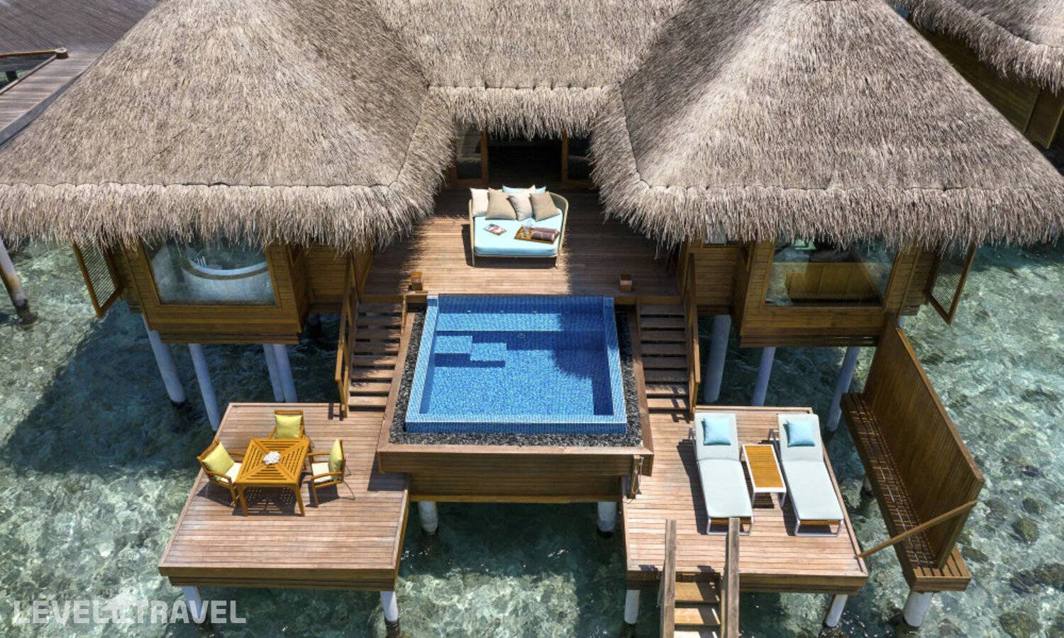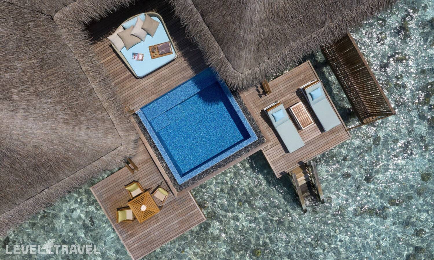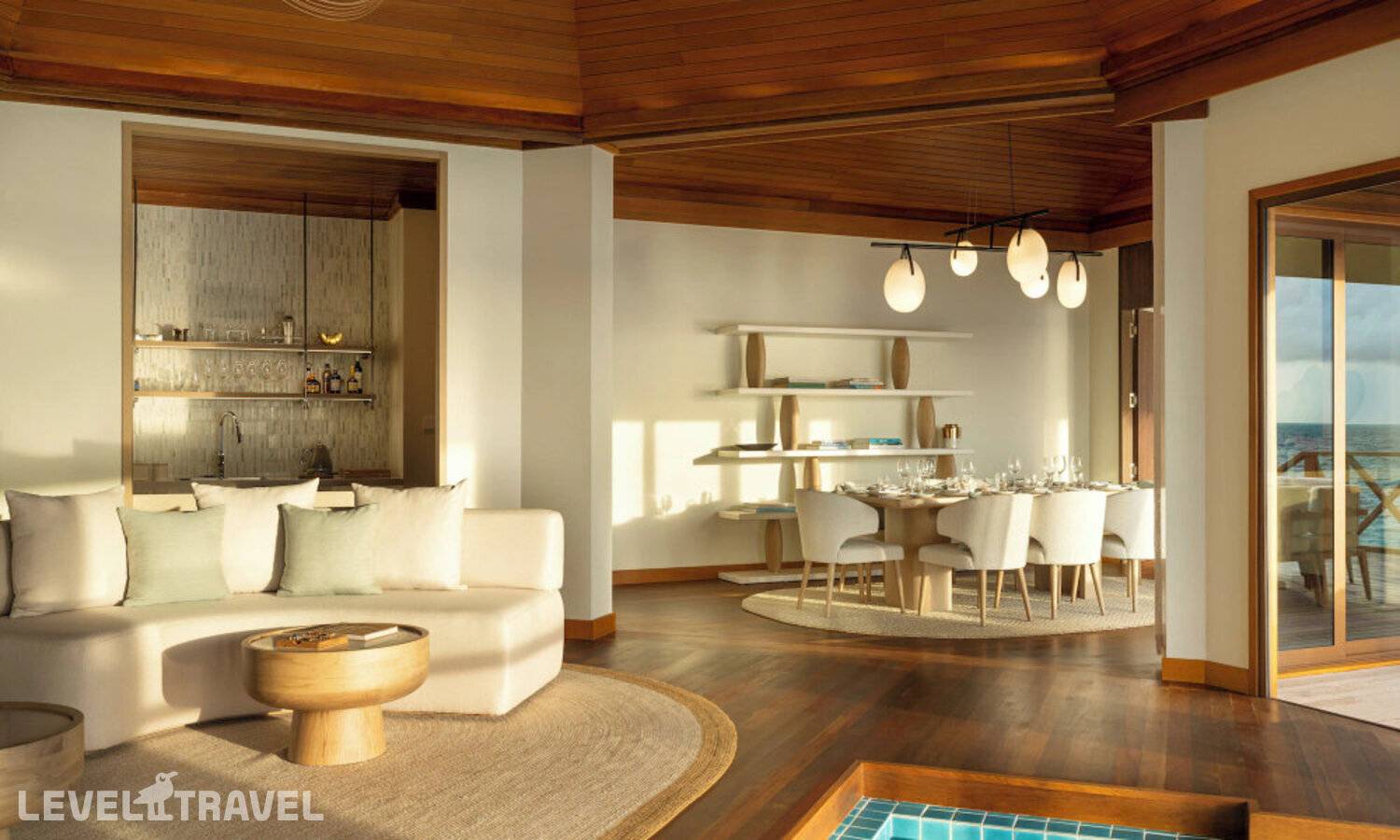 Роскошный водный павильон, расположенный в 200 метрах от берега с видом на закат. 2 спальни, 2 ванных комнаты, гостиная, столовая. Двухуровневая терраса с зоной отдыха, джакузи, шезлонгами, прямой спуск в воду. Бассейн (занимает часть гостиной и террасы). Вилла идеально подходит для спокойного уединенного отдыха.