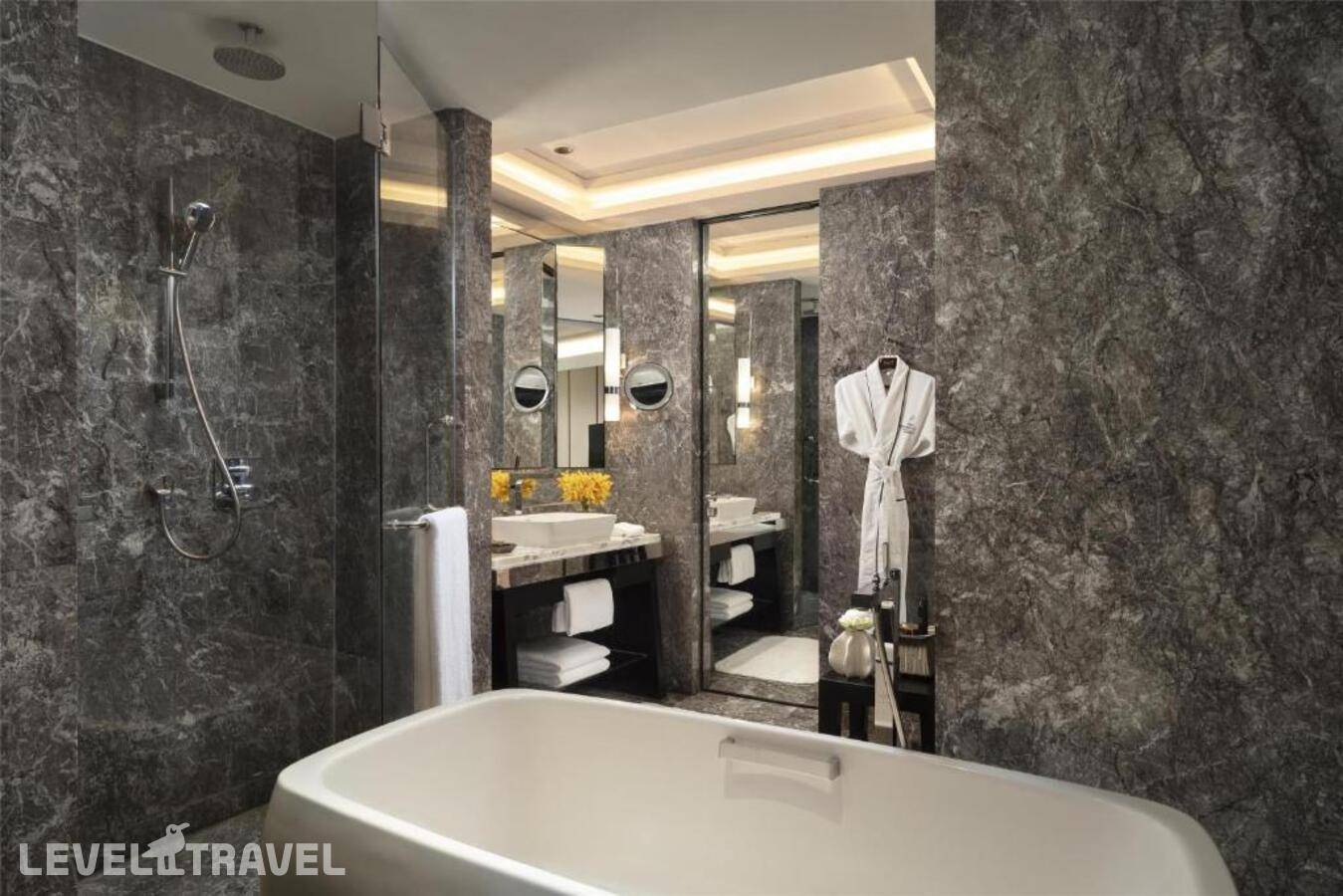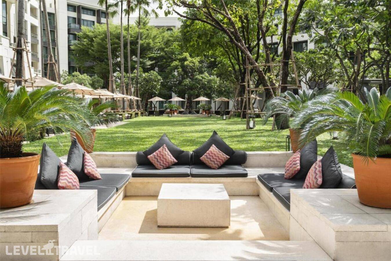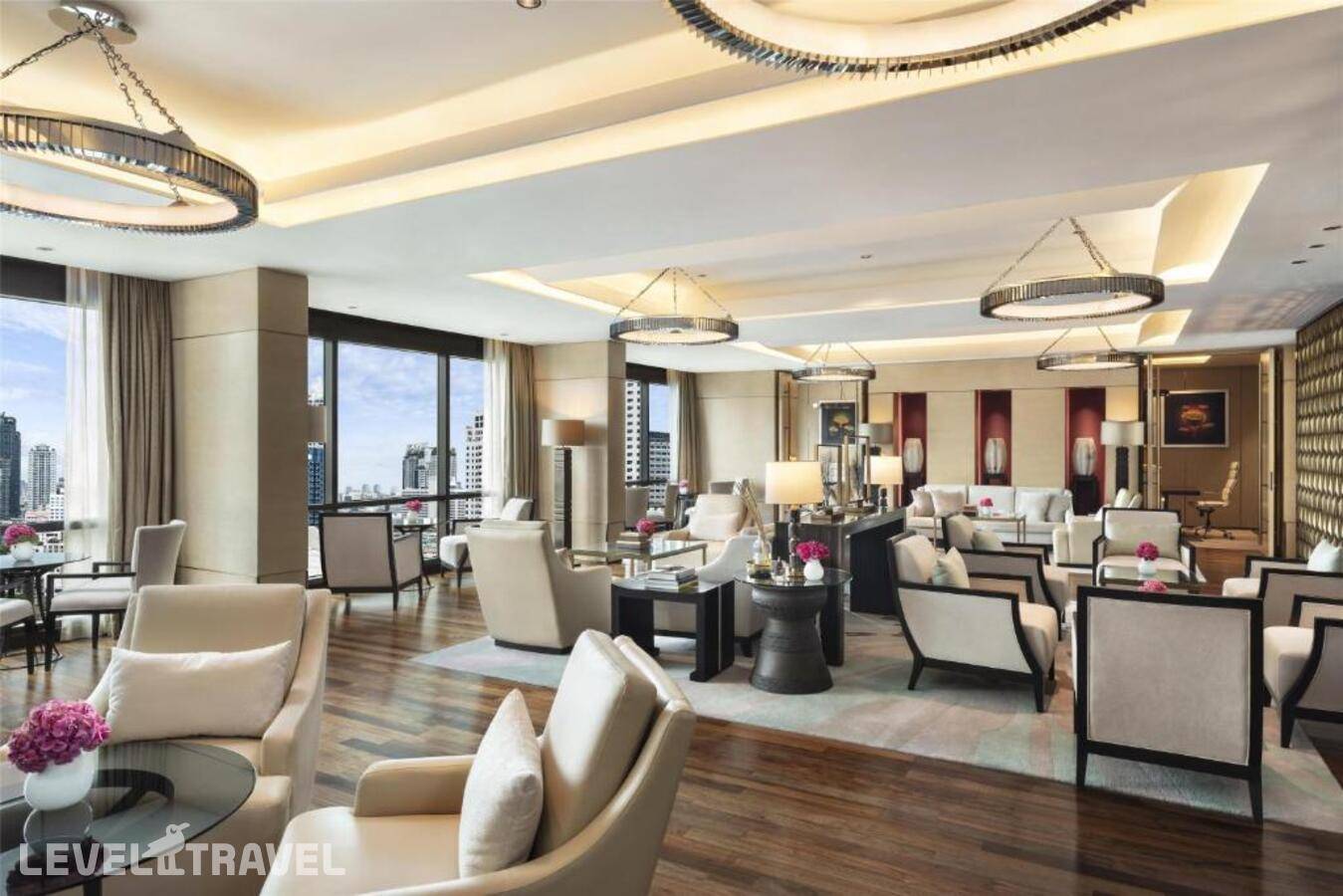 Люкс расположен в крыле Garden, на 1–6 этажах. Просторная гостиная с рабочей зоной, двуспальная кровать и ванная комната с ванной, тропическим душем и двойной раковиной. Гости могут пользоваться привилегиями представительского лаунджа, включая бесплатный завтрак, закуски в течение всего дня, полдник и вечерние коктейли.