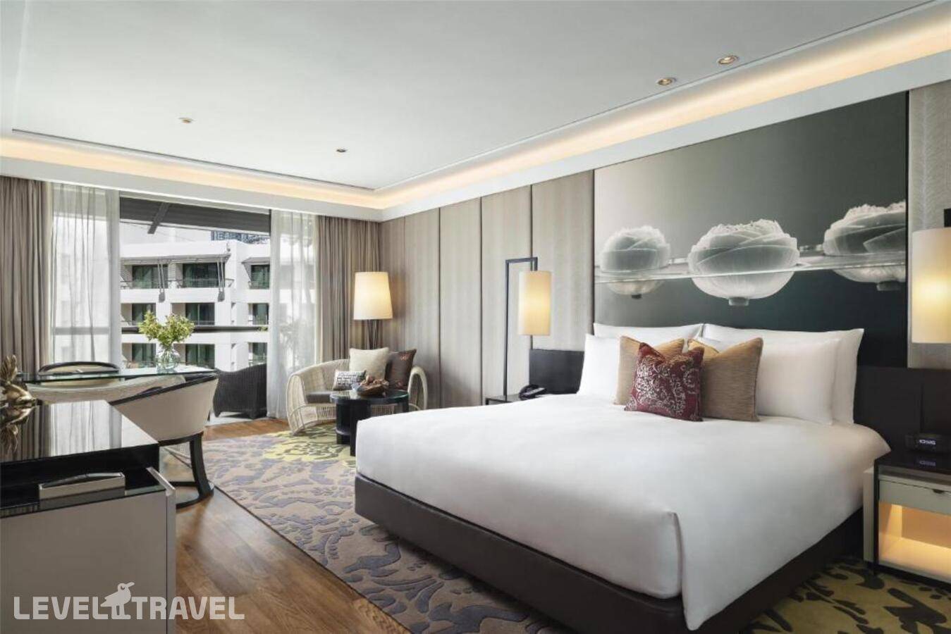 Этот просторный номер, расположенный в высотном здании «Королевское крыло» до 8-го этажа, располагает собственным балконом с видом на пышную зелень и элегантные водные элементы, а также удобной зоной отдыха на открытом воздухе. Для вашего комфорта предусмотрена просторная гостиная и рабочий стол. В сверкающей мраморной ванной комнате установлена просторная душевая кабина.