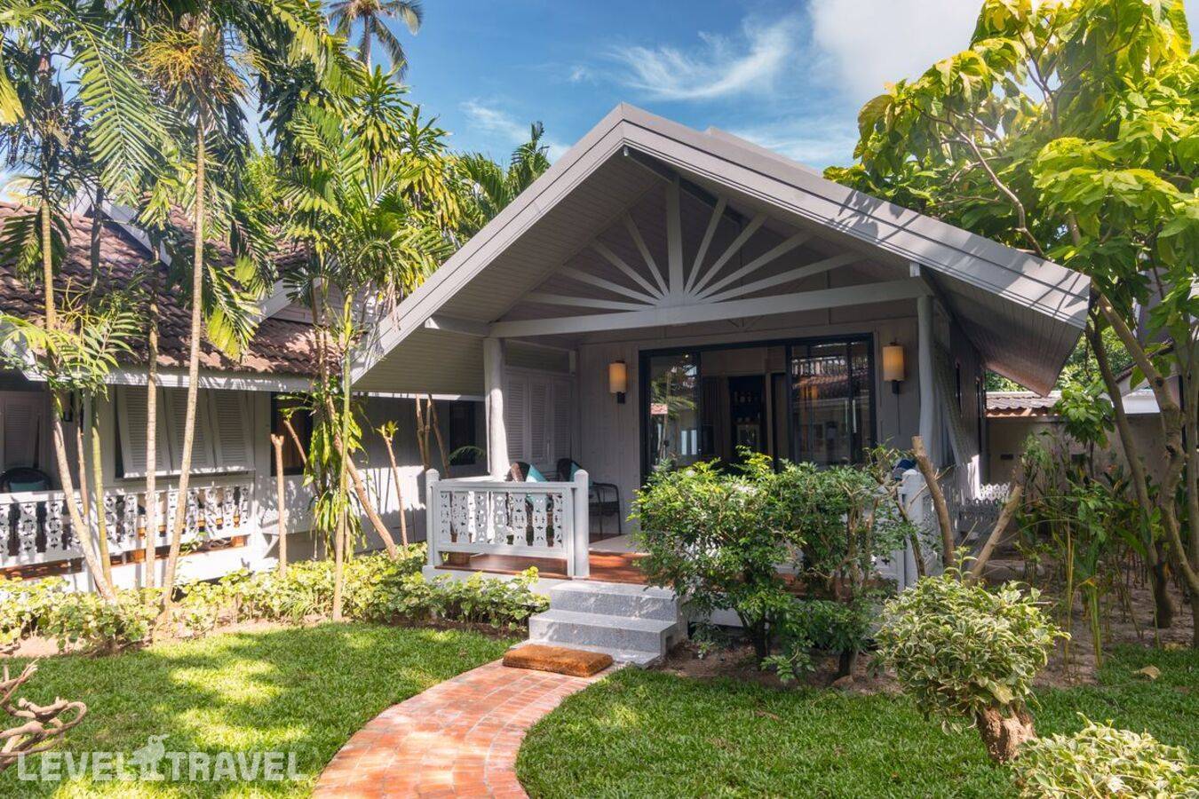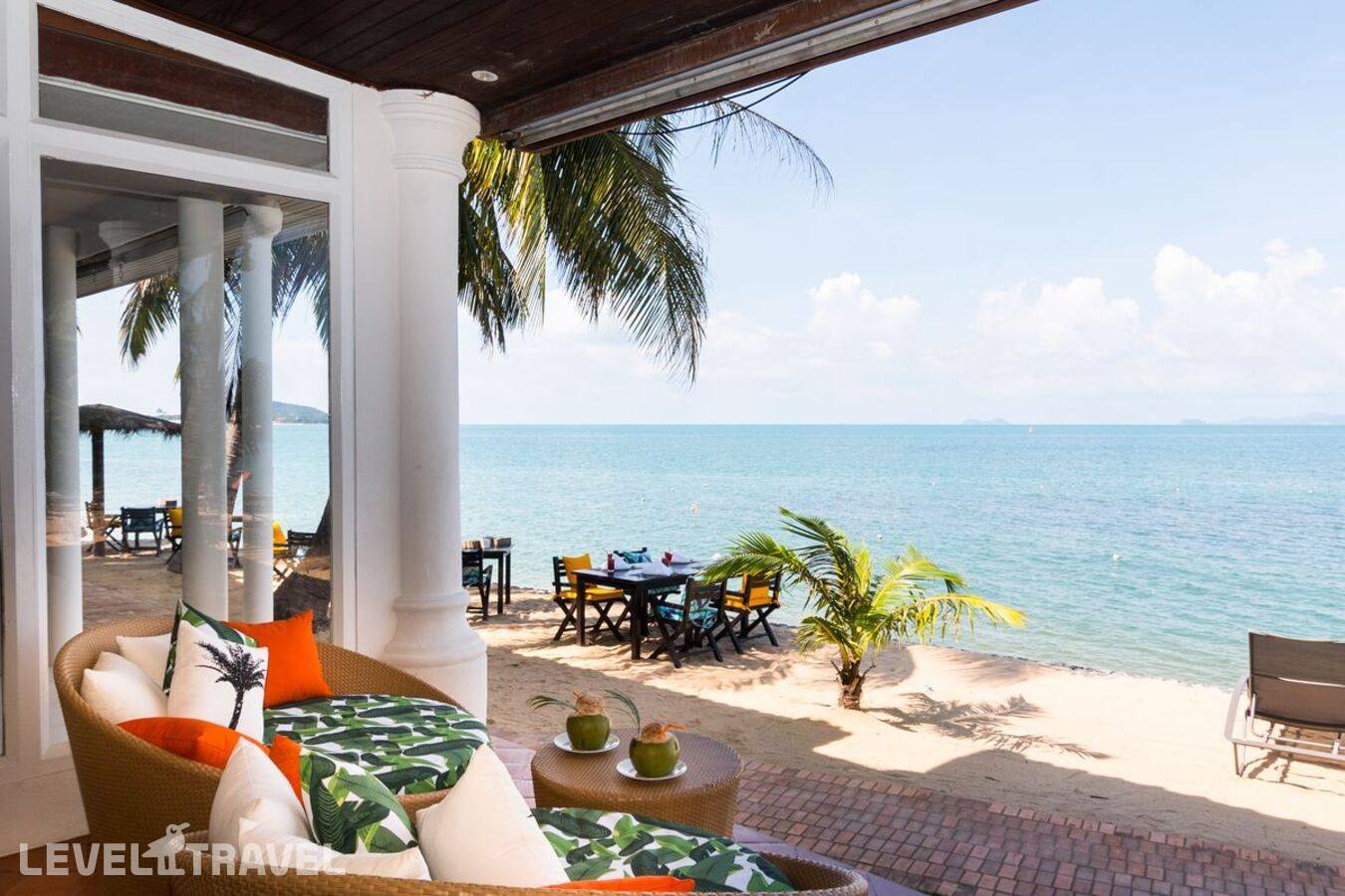 Небольшая вилла на пляже с собственной пляжной зоной. На вилле одна двуспальная кровать и софа.