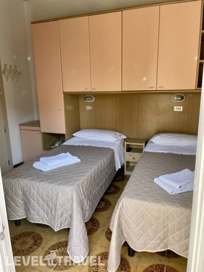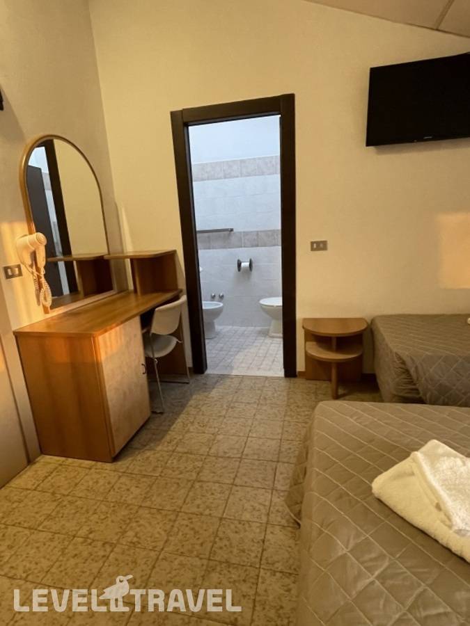 Номер: маленький. Когда писала друзьям, назвала его «каморкой папы Карло». Но потом оказалось, что он один из самых больших в отеле. У нас был балкон малюсенький, а рядом большой. Попросила номер с большим, мне сказали (и показали), что туда 3 кровати не встанет. Но мы там не очень много времени проводили, так что нормально. Для сравнения мы пару лет назад с мужем были в Римини в отеле 4* на первой линии, так там ещё меньше номер был.