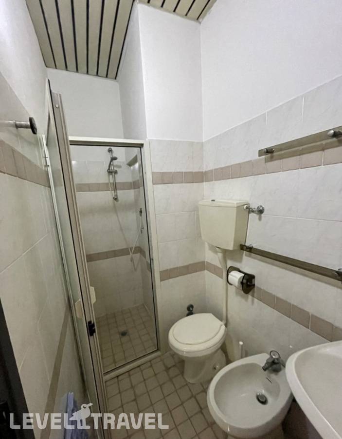 Совместный санузел: раковина, туалет, биде, душ. Душ, на что обращают внимание во всех отзывах, действительно только отделен шторкой, в полу дырка))) Но не скажу, что бы весь пол был залит. Лучше, конечно, что-то типа коврика иметь либо полотенце использовать одно из. У нас с собой было большое полотно, в котором привезли самокаты, оторвала кусок и использовала как коврик-тряпку.