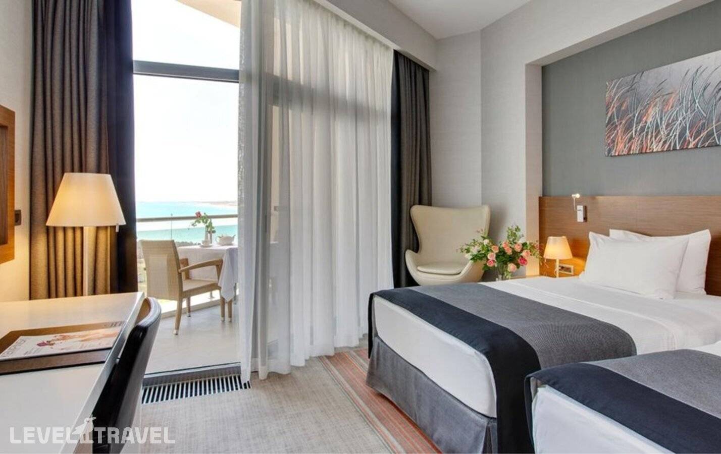 Элегантный номер с видом на море. Двуспальная кровать или 2 раздельные, ванная комната и балкон.