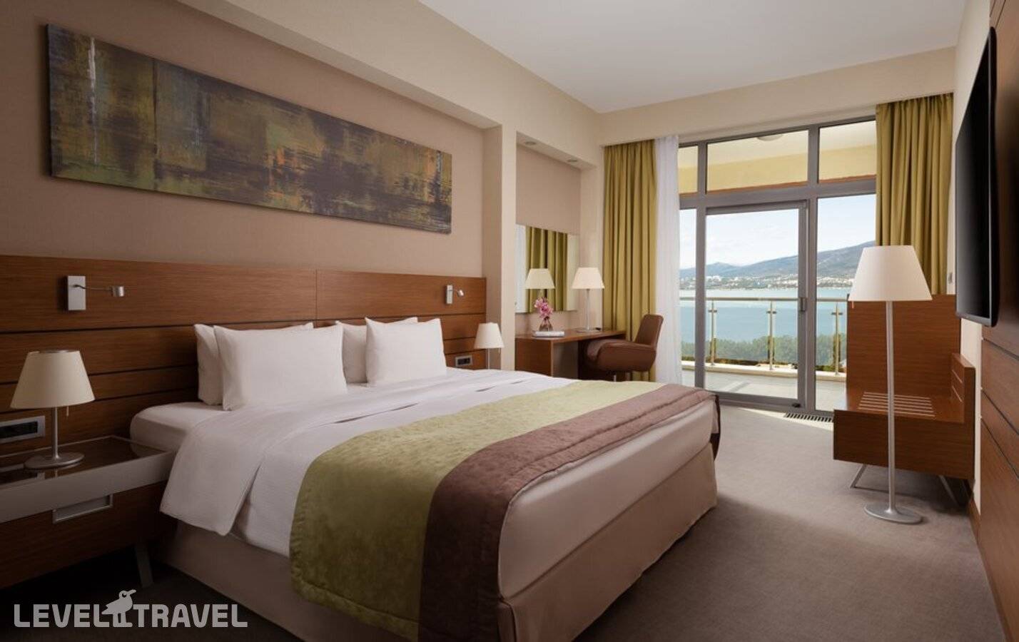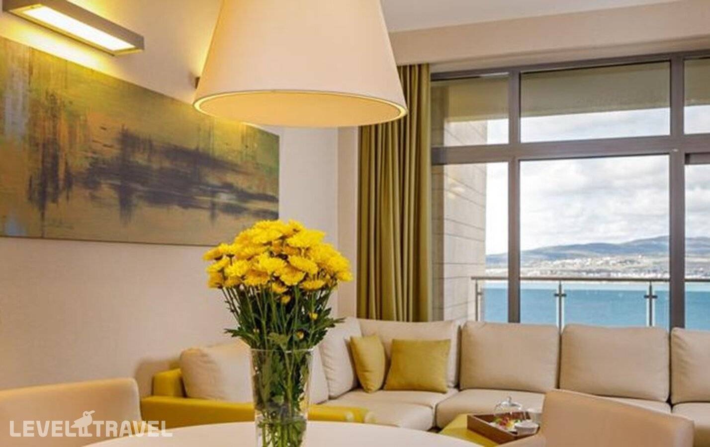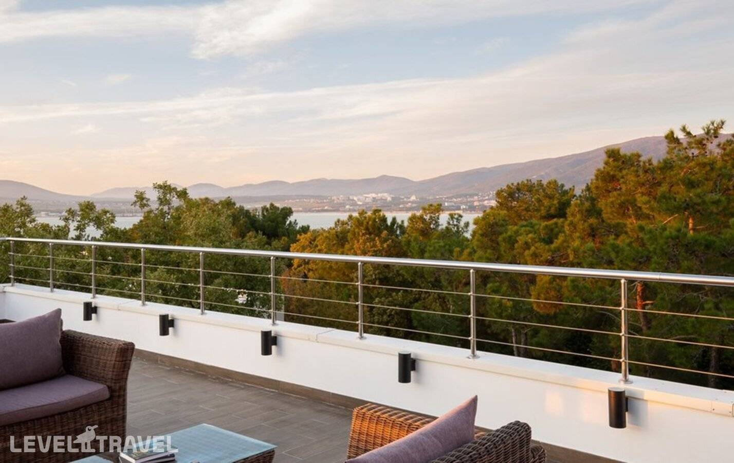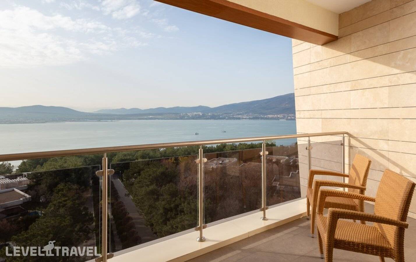 Двухкомнатный номер повышенной комфортности с отдельной спальней, гостиной и панорамным видом на Черное море и Геленджикскую бухту. Расположены с третьего по седьмой этаж основного здания.