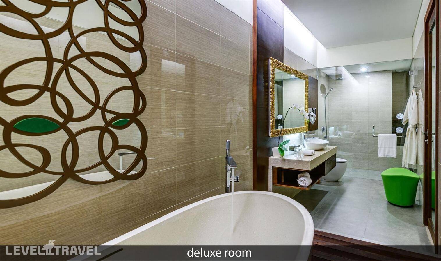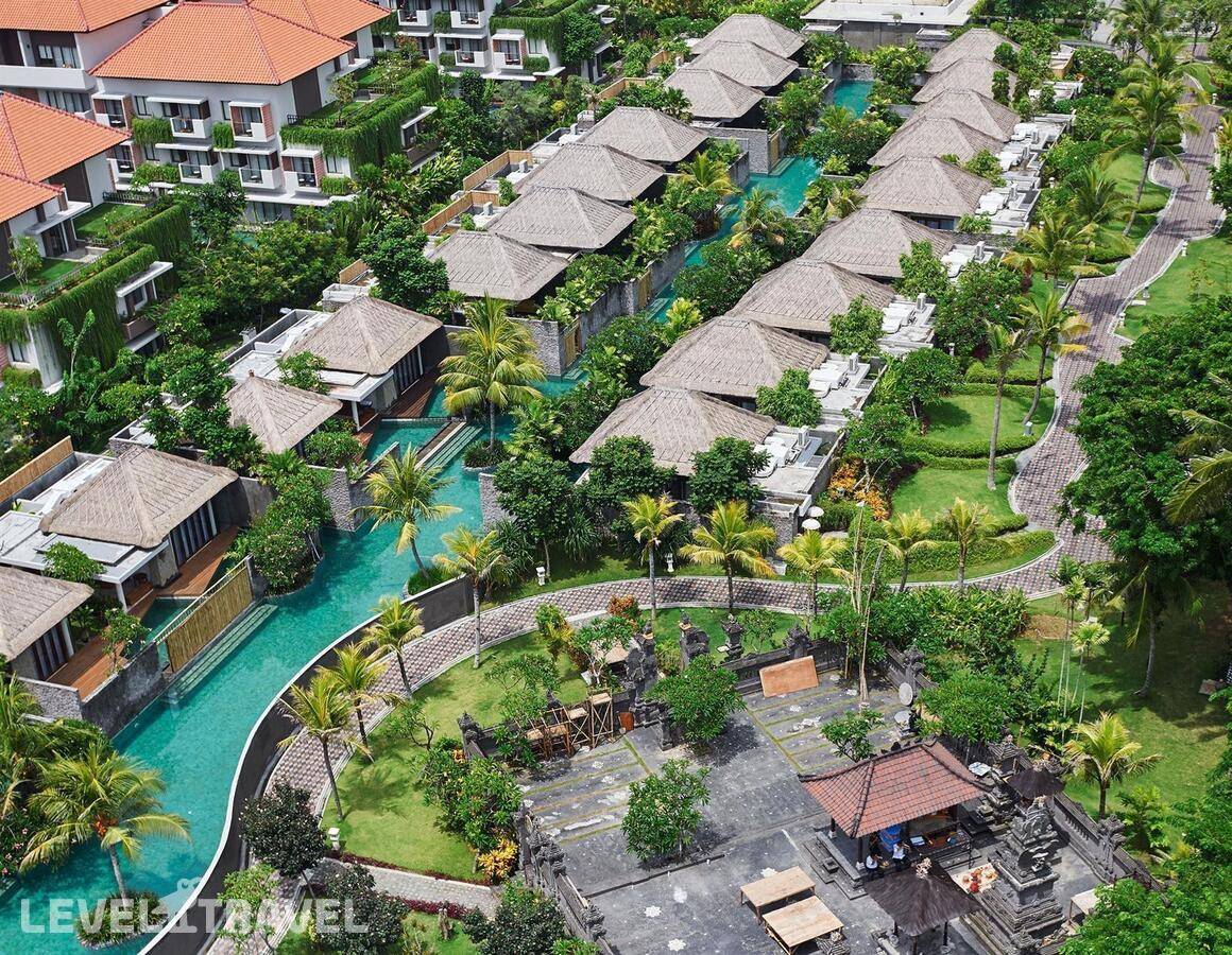 Построен: 2015 г. Расположен: в районе Нуса Дуа, на берегу моря, в 16 км от центра ночной жизни Кута (28 мин езды), в 14 км от аэропорта (23 мин езды). Состоит из 5-этажных корпусов и бунгало. Всего 460 номеров. Пляж: общественный песчаный в 50 м от отеля (1 береговая линия). Зонтики, лежаки, пляжные полотенца – бесплатно (на территории отеля). Номер телефона: +62 361 771 020. Адрес: Indonesia, Bali, Kawasan Wisata Nusa Dua Lot S-3. Внимание! Взимается депозит при заселении. Домашние животные не допускаются. Возможно проживание инвалидов - 4 номера deluxe pool access (доступ в лобби, к ресторану). Привилегии для номеров (кроме Deluxe/Deluxe Pool Access): -Завтрак в номер, ежедневный послеполуденный чай, вечерний коктейль, кофе и чай -Ванна для ног по прибытию -Бесплатно питьевая вода в бутылках -Улучшенные туалетные принадлежности -Ванная комната с живописным видом