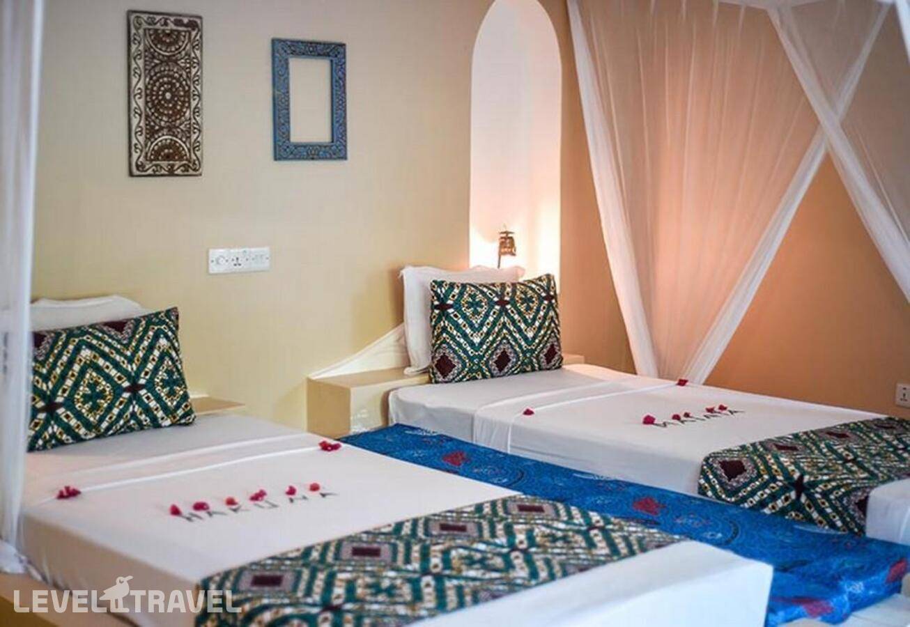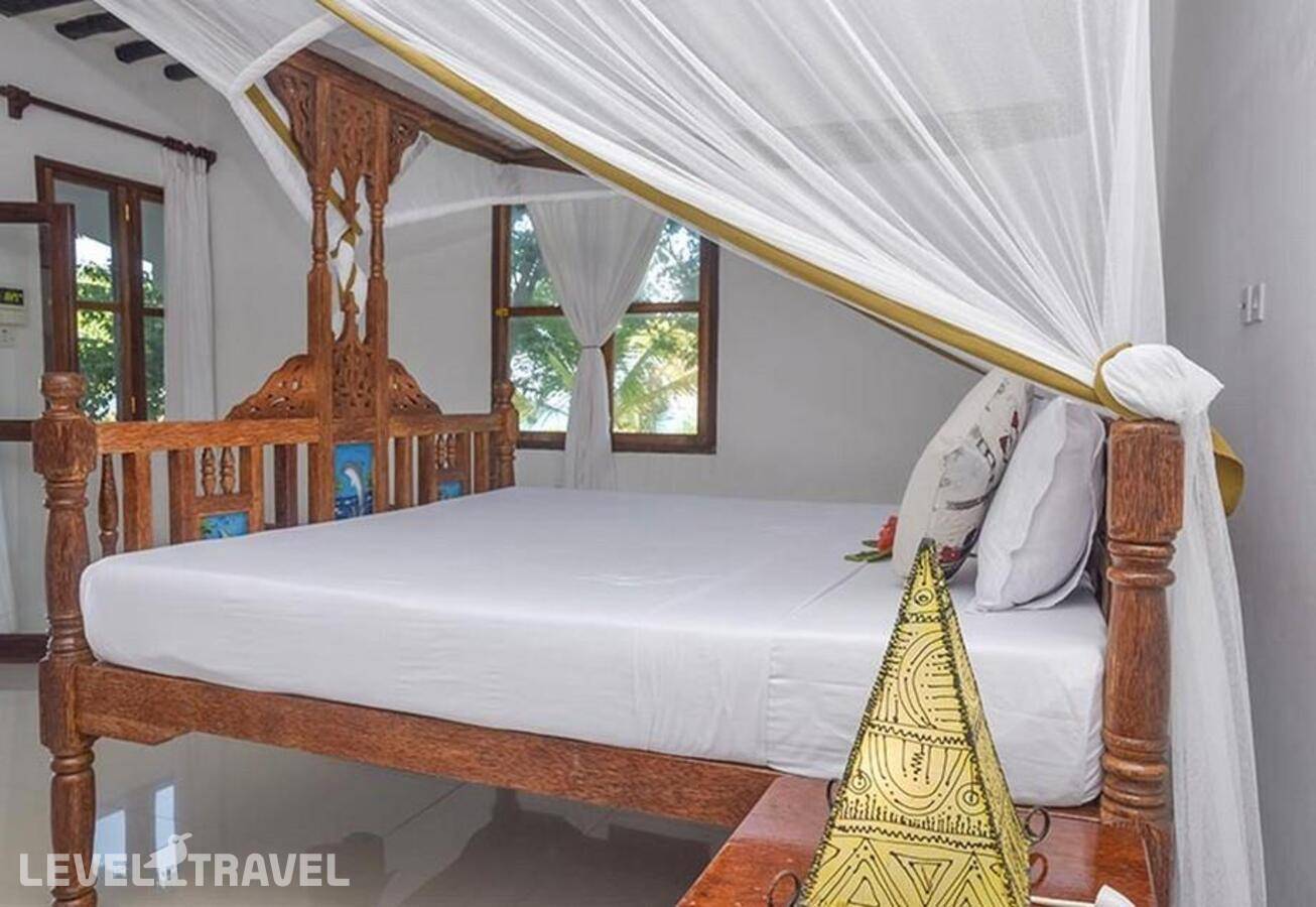 Отелю с трудом можно поставить три звезды, он запросто может испортить вам отпуск. Про номера и территорию. Старый номерной фонд, часть которого прошла «реновацию» три года назад, что сделало их чуть менее плохими. Территория состоит из двух групп номеров, спа-зоны, одного небольшого бассейна, магазинчика с очень дорогими сувенирами, пляжного бара и ресторана с ресепшен. И дорожки между этими объектами. Никаких зон для прогулок или отдыха. Прогулка по всей территории неспешным шагом занимает 7 минут из края в край. В первый день не смогли войти в номер, потому что в двери сломался ключ, видимо, сделанный из уставшего порошкового алюминия лет 50 назад. 104 номер, делюкс гарден вью с видом на океан. Ремонтёр лениво приплёлся через сорок минут после трёх напоминаний на ресепшен, выдал нам второй ключ, который работал только снаружи, и ещё три дня клинеры брали у нас этот ключ, так как у них не было дубликата для уборки. В номере не работало 70 % лампочек и потолочный вентилятор. Лампочки заменили через пару дней. Вентилятор пришли чинить за день до вылета. Розетки английские — по возможности возьмите с собой переходник. В номере как минимум есть чайник, маленький холодильник и сейф. В номере живут муравьи, гигантские древоточцы, ящерицы и прочие жуки. Они не досаждают, но имеются в наличии. Комаров нет. Ни внутри, ни снаружи. Кондиционер работает. Про еду. Мы заехали в 15 часов, вынуждено опоздали на включённый обед. Отелю не показалось нужным подготовить нам хоть какую-то еду, поэтому пришлось заказывать приготовить нам что-нибудь в ресторане. Меню не было, поэтому мы договорились о том, чтобы нам создали курицу гриль с картошкой фри. За 15 $ на человека! 30 $ за стрит-фуд. Ругаться и стараться выбить скидку сил не было после долгого перелёта, для порядка повозмущались, но это не помогло. Завтрак начинается в 7:30, обед в 12:30, ужин в 19. Могу на полчаса где-то ошибиться. Завтрак каждый день одинаковый. Обед и ужин ничем не отличаются друг от друга. Еда отвратительная и совершенно неразнообразная. Фрукты 1—2 вида. Иногда какие-то булочки. Иногда какие-то пирожные. Морепродукты готовят без очистки, мидии с песком, кальмары горькие и резиновые. Из мяса можно есть только говядину. При этом есть возможность заказать за 25 $ заблаговременно себе морскую тарелку, так вот она восхитительна. Про сервис и досуг. Служащие отеля вроде как весьма доброжелательные, но неимоверно ленивые и им совершенно наплевать на время. Договориться на 16 на морскую тарелку и получить её в 17 — нормально. Договориться утром на ранний завтрак в 6:30 и получить его в 7:40 — без вопросов! Уборка номера с 10 до 13, с 19 до 21 зайдут попрыскают антикомарином. Анимации как таковой нет. Есть раз в неделю максимально нелепое Масаи-шоу. Выходят охранники в клетчатых тогах, орут и топают в рассинхроне 20 минут. Раз в неделю случается вечер караоке. Старинные микрофоны, караоке-зона «Ютуба» и постоянно пропадающий звук. Позорно. Раз в неделю ужин у бассейна. Меньше еды, меньше пространства, зато служащие два часа носят столы и стулья туда и потом два часа обратно. Раз в неделю ужин на берегу океана. Играет живая музыка, официантки в народных костюмах. Кормят так же, как и обычно. Есть спа-зона с оверпрайсом за массаж. Занимательный факт, что массажист предпочитает делать массаж, хорошенечко обкурившись травы. Что рядо