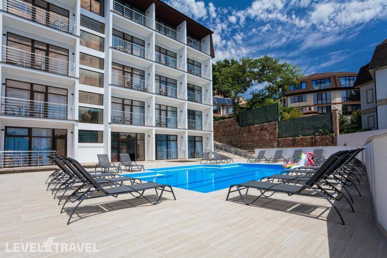 Построен: 2019 г. Расположен: в 1 км от центра Ялты, в 98 км от аэропорта г. Симферополь. Состоит из 5-этажного здания. Всего 54 места. Пляж: общественный галечный в 1 км от отеля, третья береговая линия. Есть трансфер. Зонты и лежаки платно. Номер телефона: +7 (978) 061 01 94. Адрес: Республика Крым, г. Ялта, ул. Туристская 12в заезд с 14:00, выезд до 12:00