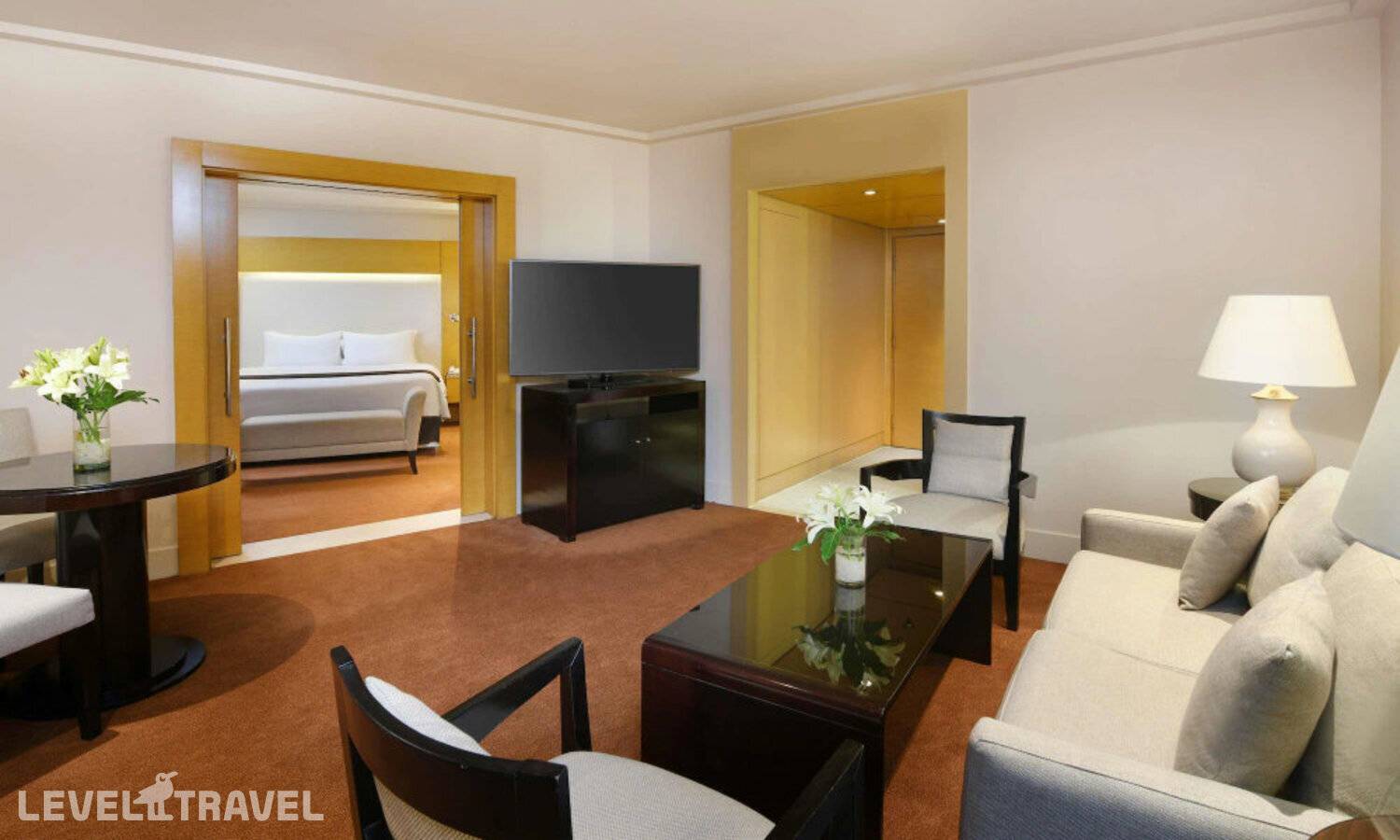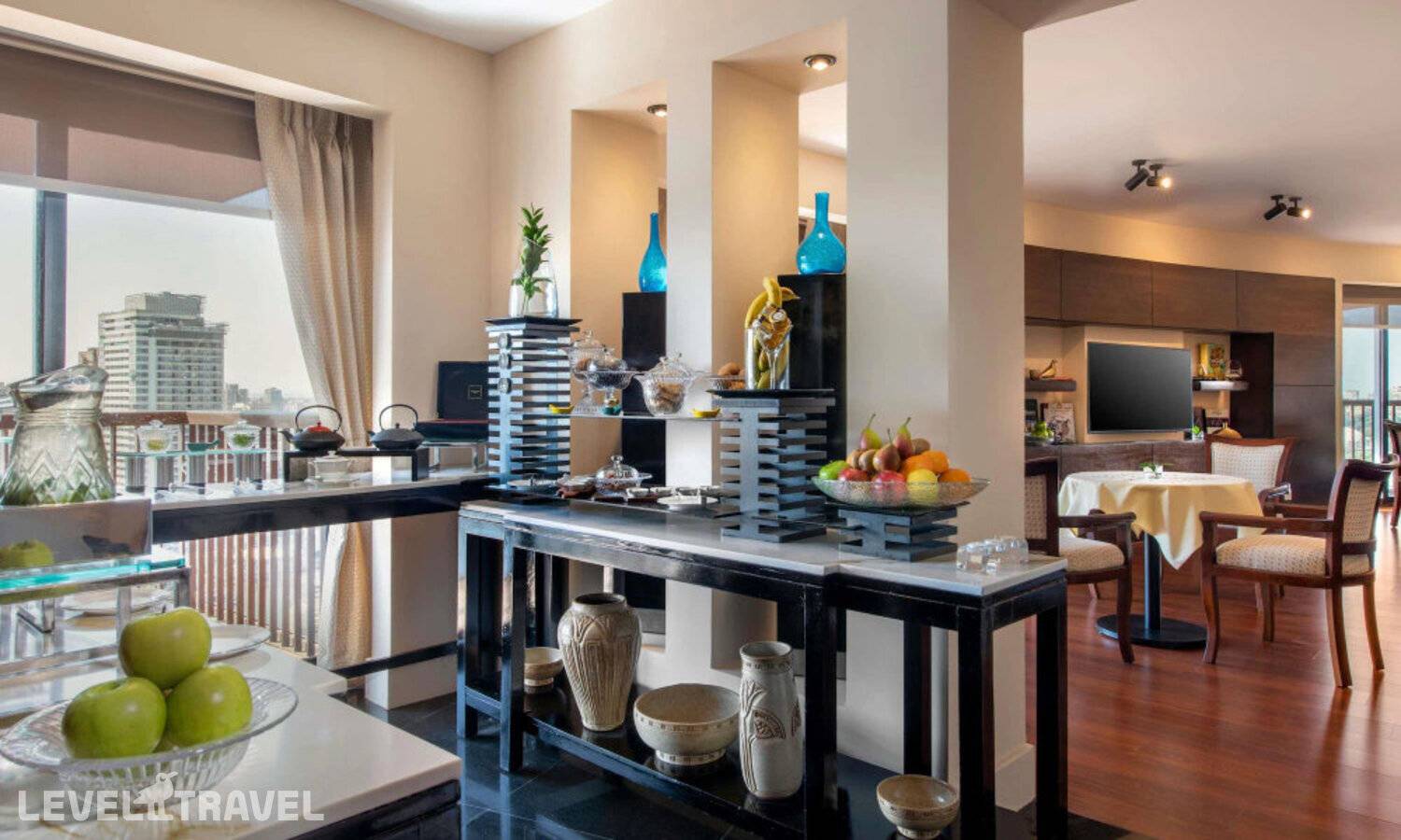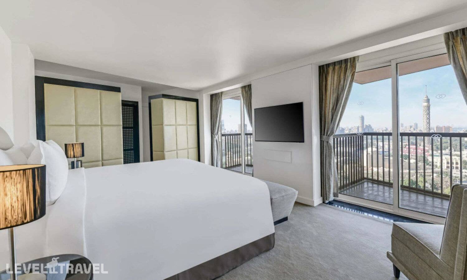 Просторный номер с гостиной, спальней и мини-кухней. В спальне двуспальная кровать. Доступ в клубный лаунж. Панорамный вид на Нил.