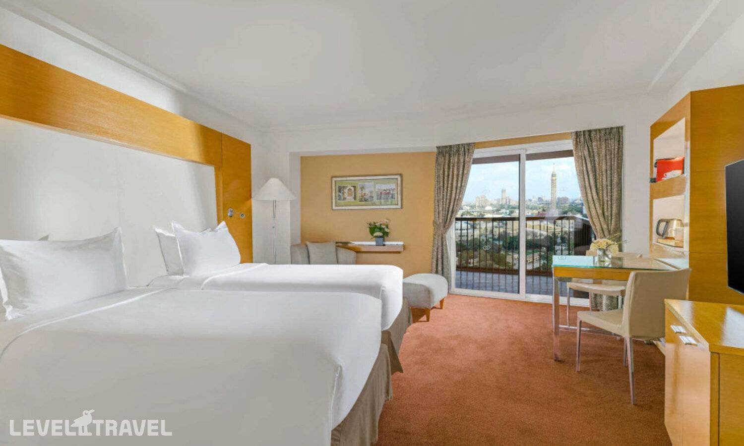 Номер с балконом с частичным видом на Нил. Двуспальная кровать или две односпальные. Номер располагается на высоких этажах.