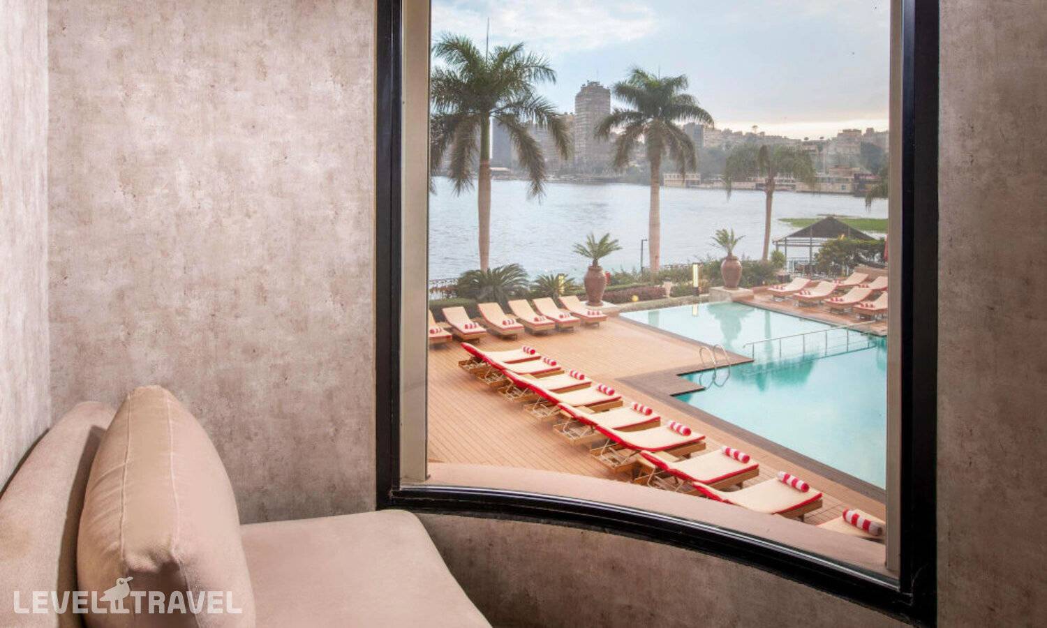 Номер с балконом с прямым видом на Нил. Двуспальная кровать или две односпальные. Доступ в клубный лаунж.