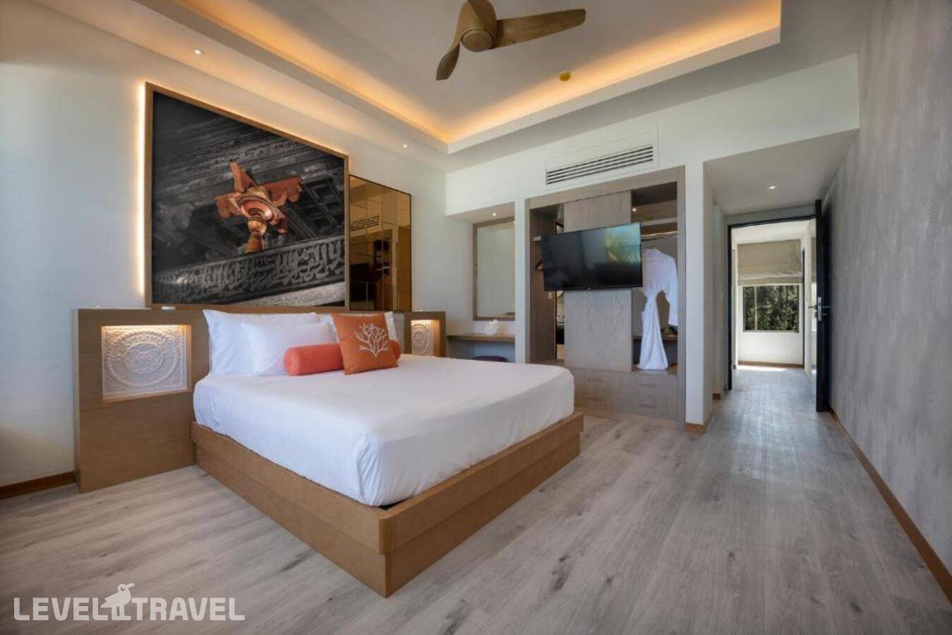 Стильный номер с видом на океан. Спальня с двуспальной кроватью. Ванная комната с душем. Балкон или терраса. Номера расположены в двухэтажных корпусах, по 4 номера в каждом.