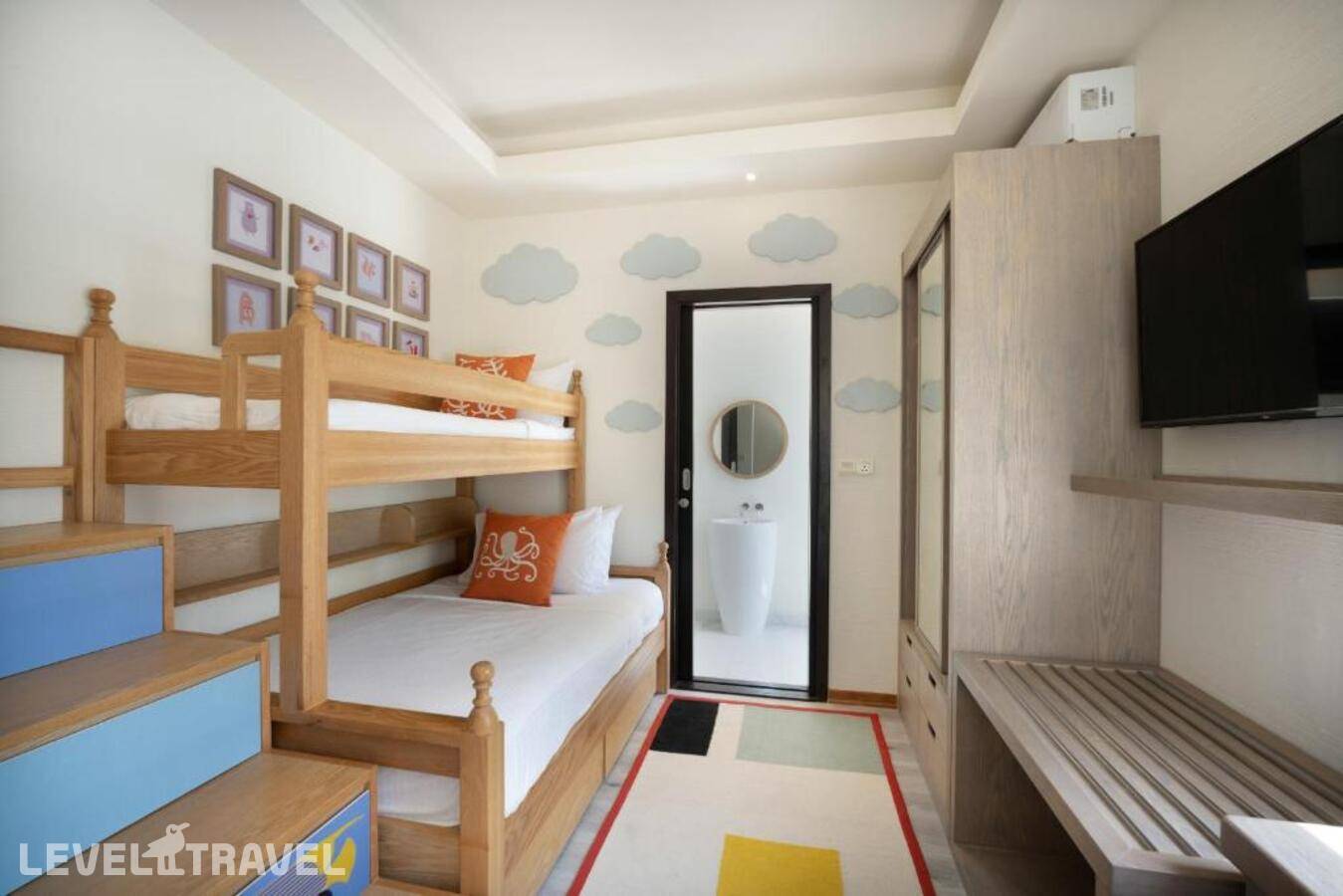 Уютный номер рядом с пляжем, с видом на океан. Две спальни, взрослая с двуспальной кроватью, в детской - двухъярусная кровать. Две ванные комнаты с душем, Терраса или балкон. Номера расположены в двухэтажных корпусах.