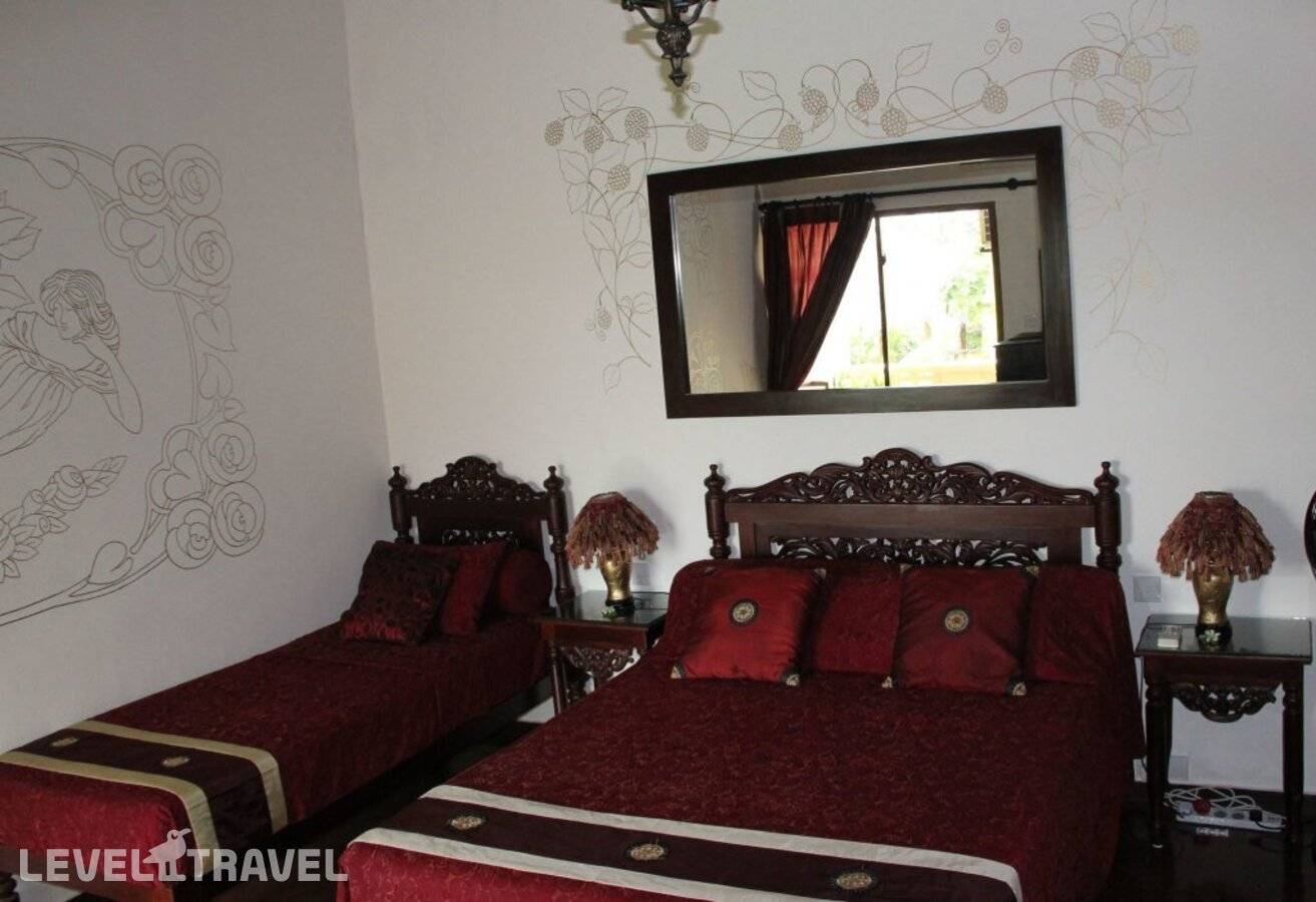 Комфортабельный номер. В номере двуспальная кровать.