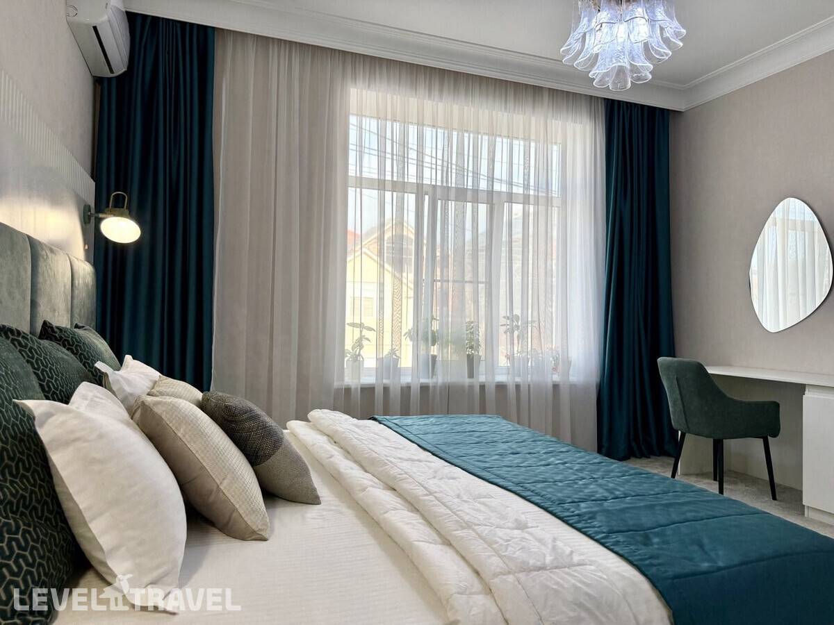 Построен: 2023 г. Расположен: в активной части города. Рядом магазины, остановки общественного транспорта, сквер Депутатов, Свято-Успенский собор. Состоит из одного корпуса. Всего 6 номеров. Пляж: общественный, песчано-галечный, 3500 м. Телефон: 8 (928) 554-74-60. Адрес: Республика Дагестан, г. Махачкала, ул. Мирзабекова, 249. Размещение с домашними животными не допускается. Заезд с 14:00. Выезд до 12:00.