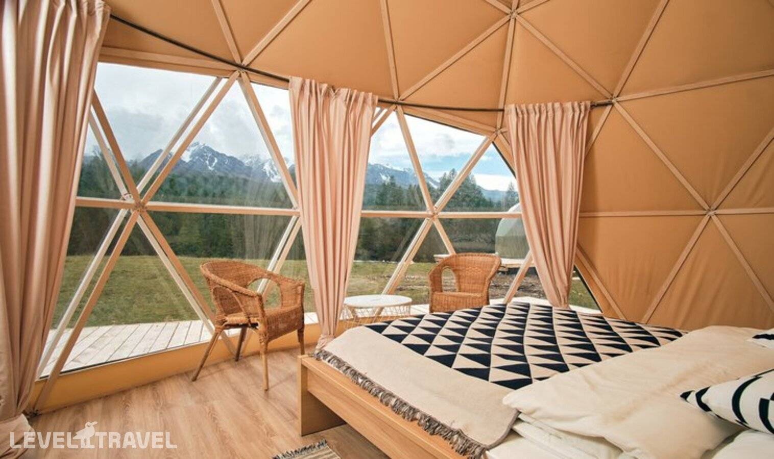 от 144 685 ₽Даже вдалеке от цивилизации в эко-кемпинге обеспечен максимально возможный комфорт - удобные кровати с белоснежными простынями, чистая вода из горной реки. Утром и вечером солнечные батареи и генератор обеспечивают экокемп электричеством, чтобы гости могли включить освещение в номерах или зарядить гаджеты.
