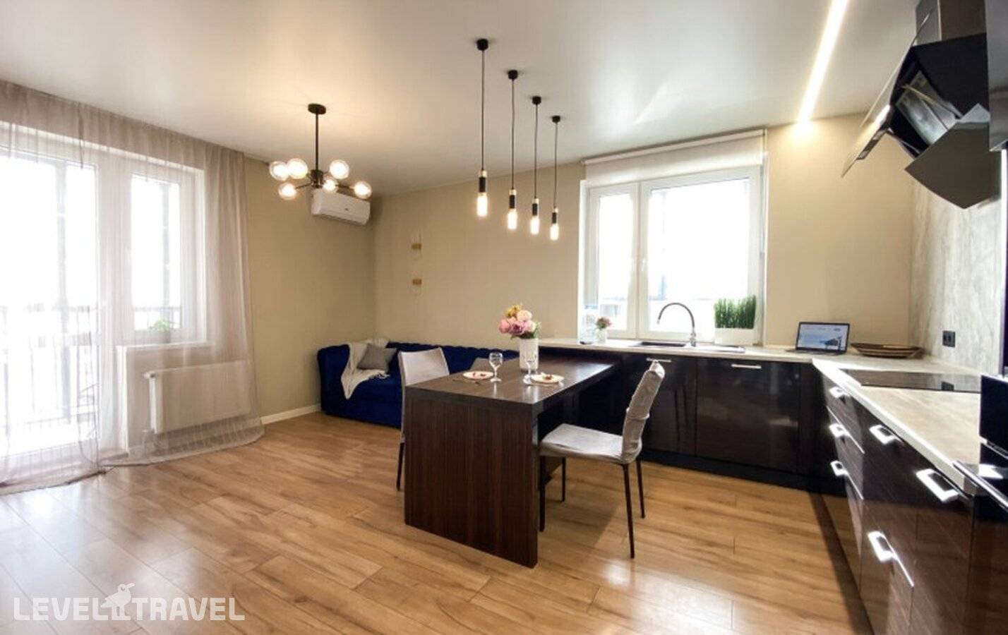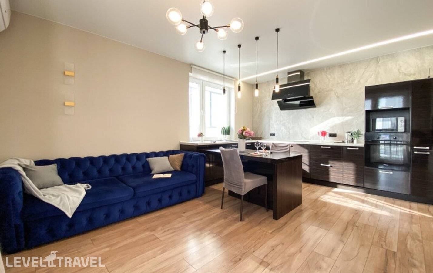 от 22 221 ₽Светлые и просторные однокомнатные апартаменты с балконом расположены в новом жилом комплексе. Обе спальни изолированные и располагают двуспальной кроватью. Каждая кухня-гостиная вмещает зону для приготовления еды, обеденное пространство, диван, телевизор. В совмещенных санузлах установлены душевая и стиральная машина. Во всей сети работает Wi-Fi. Во дворе установлено детское игровое и спортивное снаряжение, предусмотрены парковки. В здании напротив открыты продуктовый супермаркет и кафе.