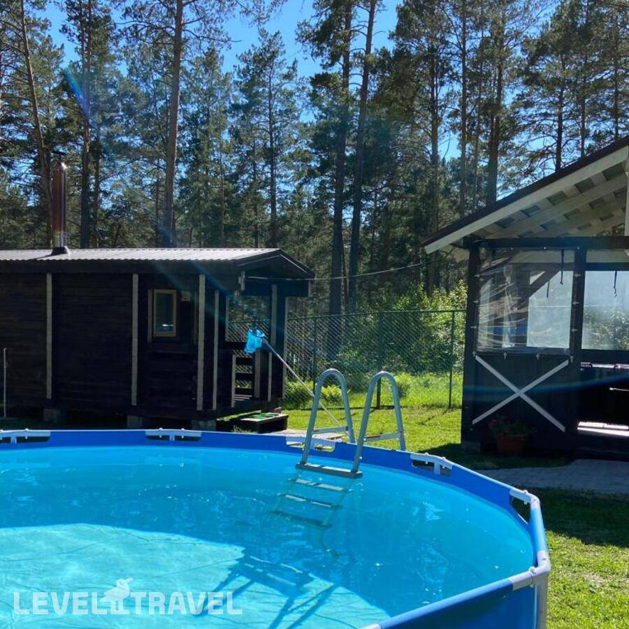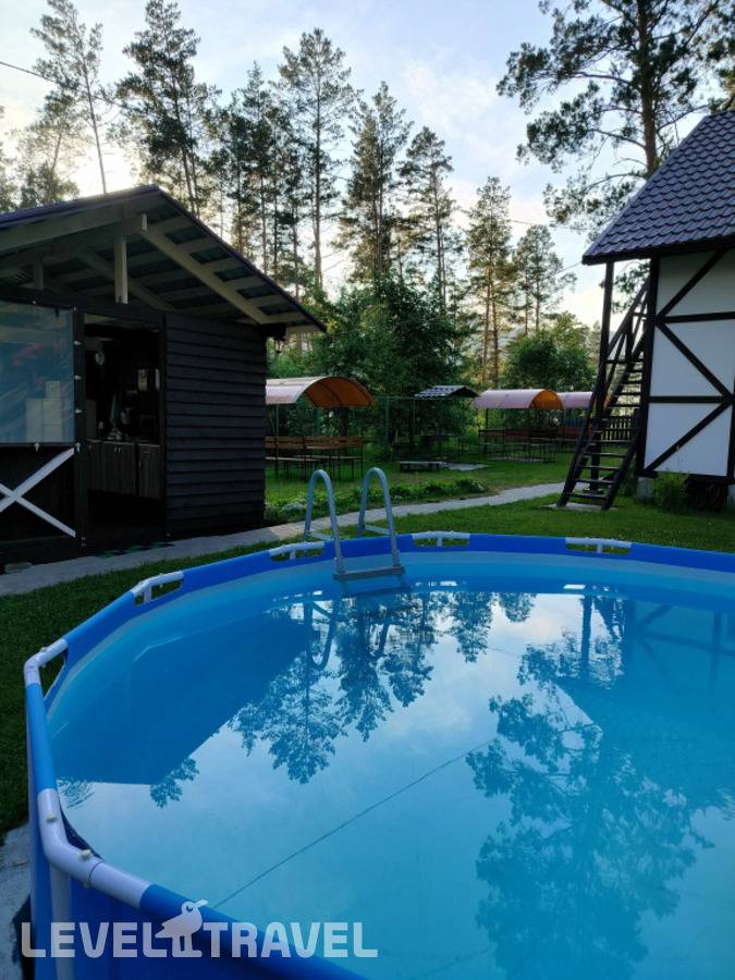 от 19 779 ₽На базе отдыха оборудована полноценная кухня, где можно самостоятельно приготовить еду, а для любителей шашлыков предусмотрена мангальная зона. К услугам гостей открытый бассейн, работающий сезонно, есть русская баня, гамаки и качели. Гости, приезжающие на машинах, могут оставить свой автомобиль на охраняемой парковке, а для малышей организована небольшая игровая площадка с качелями.