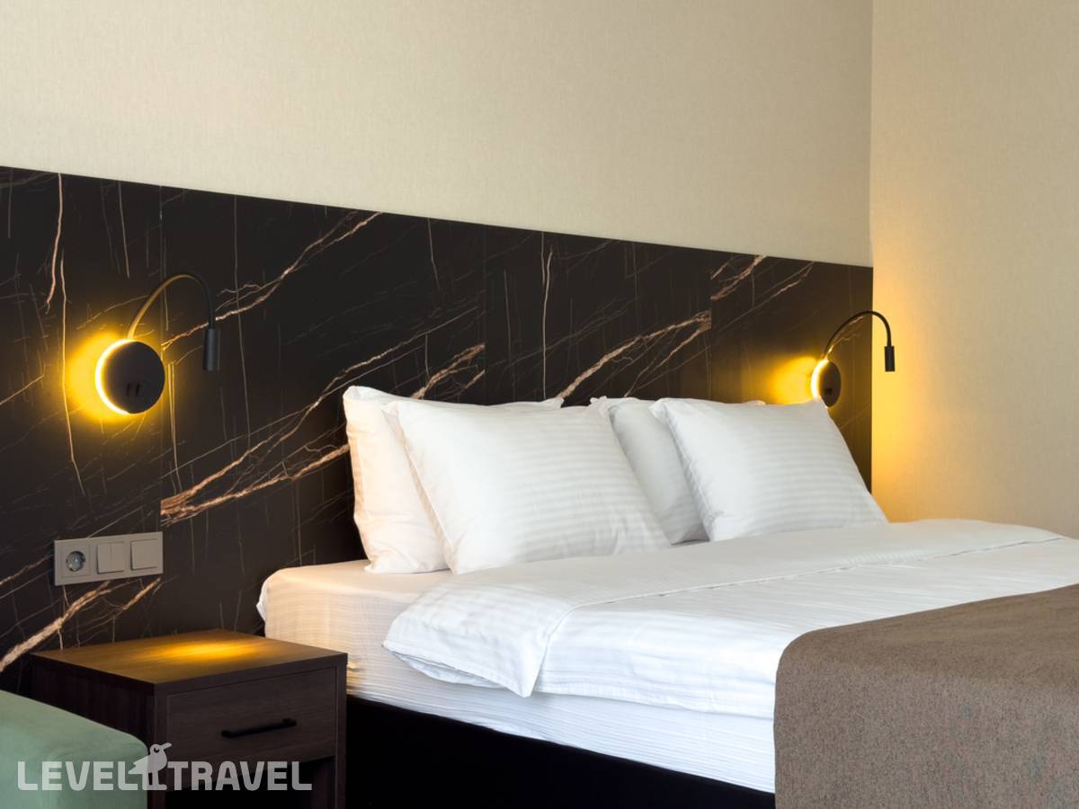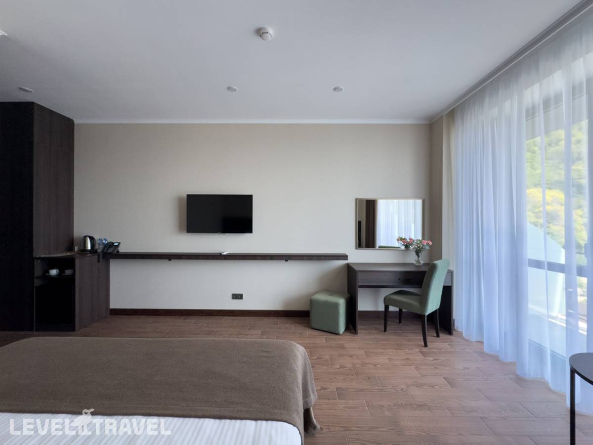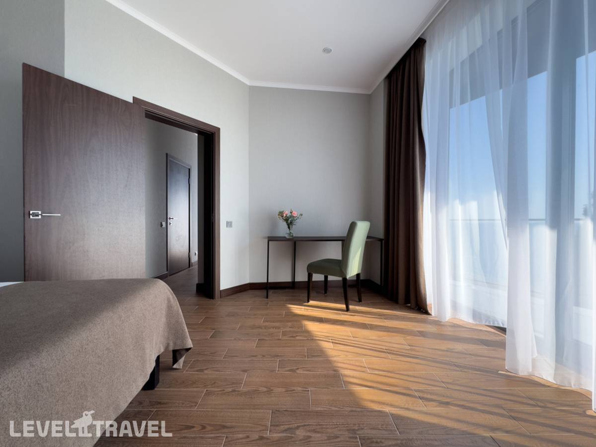 Просторный двухкомнатный номер с балконом. В номере двуспальная или две односпальные кровати. Дополнительное место: кресло-кровать.
