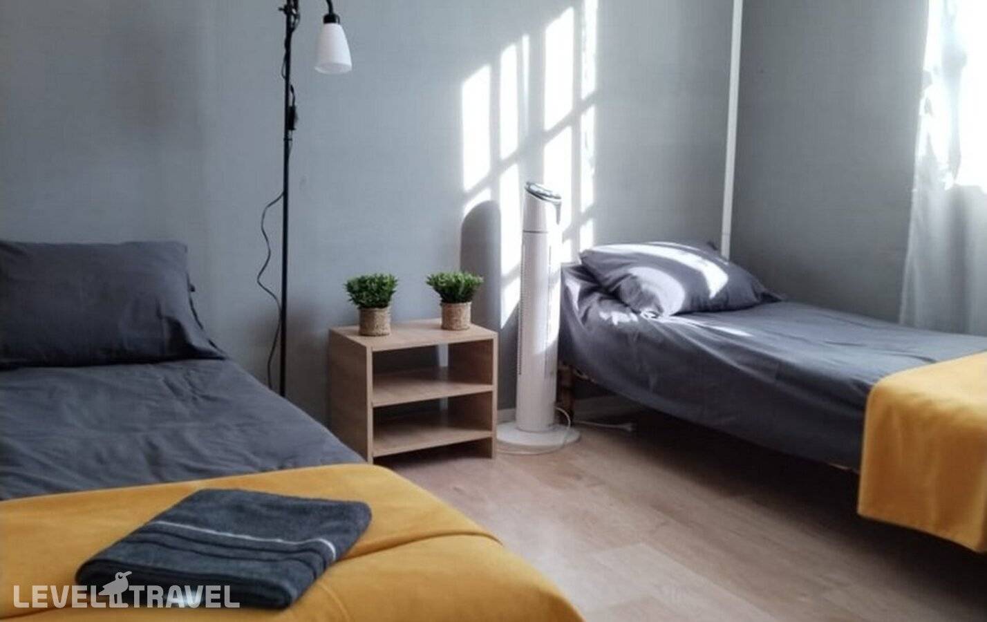 Небольшой уютный номер. В номере две односпальные кровати.