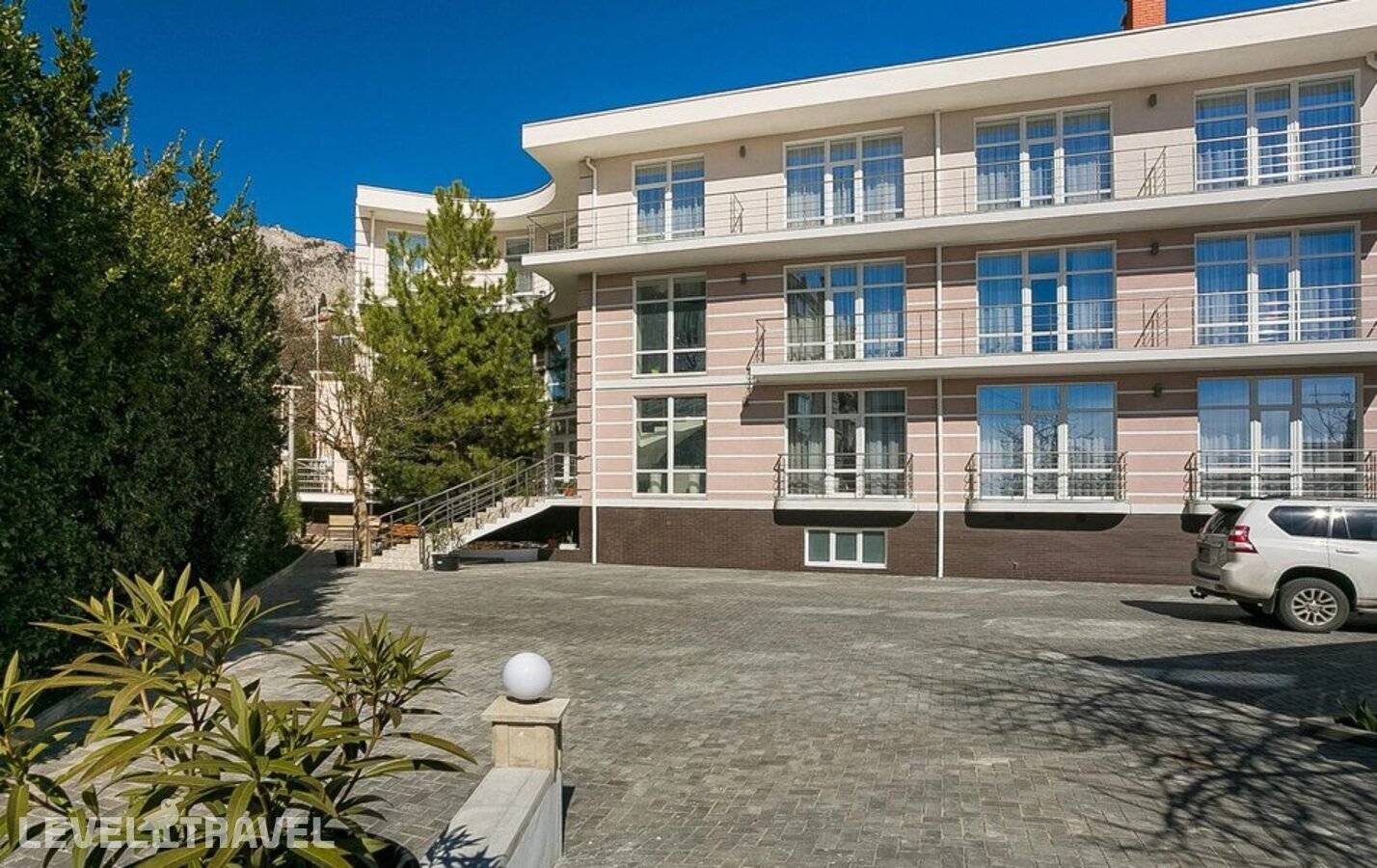 Расположен: в пгт Кореиз г. Ялта, в 140 км от аэропорта г. Симферополь, в 100 км от ж/д вокзала г. Бахчисарай, в 1,5 км от Юсуповского парка Состоит из: одного трехэтажного здания Пляж: общественный песчано-галечный пляж в 700 м от отеля (третья береговая линия). Зонтики, шезлонги - платно. Адрес: Россия, Республика Крым, г. Ялта, пгт Кореиз, пер. Предгорный, д. 3 Заезд с: 14:00 Выезд до: 12:00 Отель не принимает к размещению домашних животных