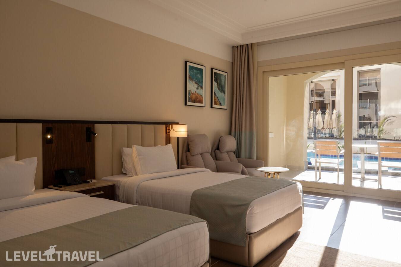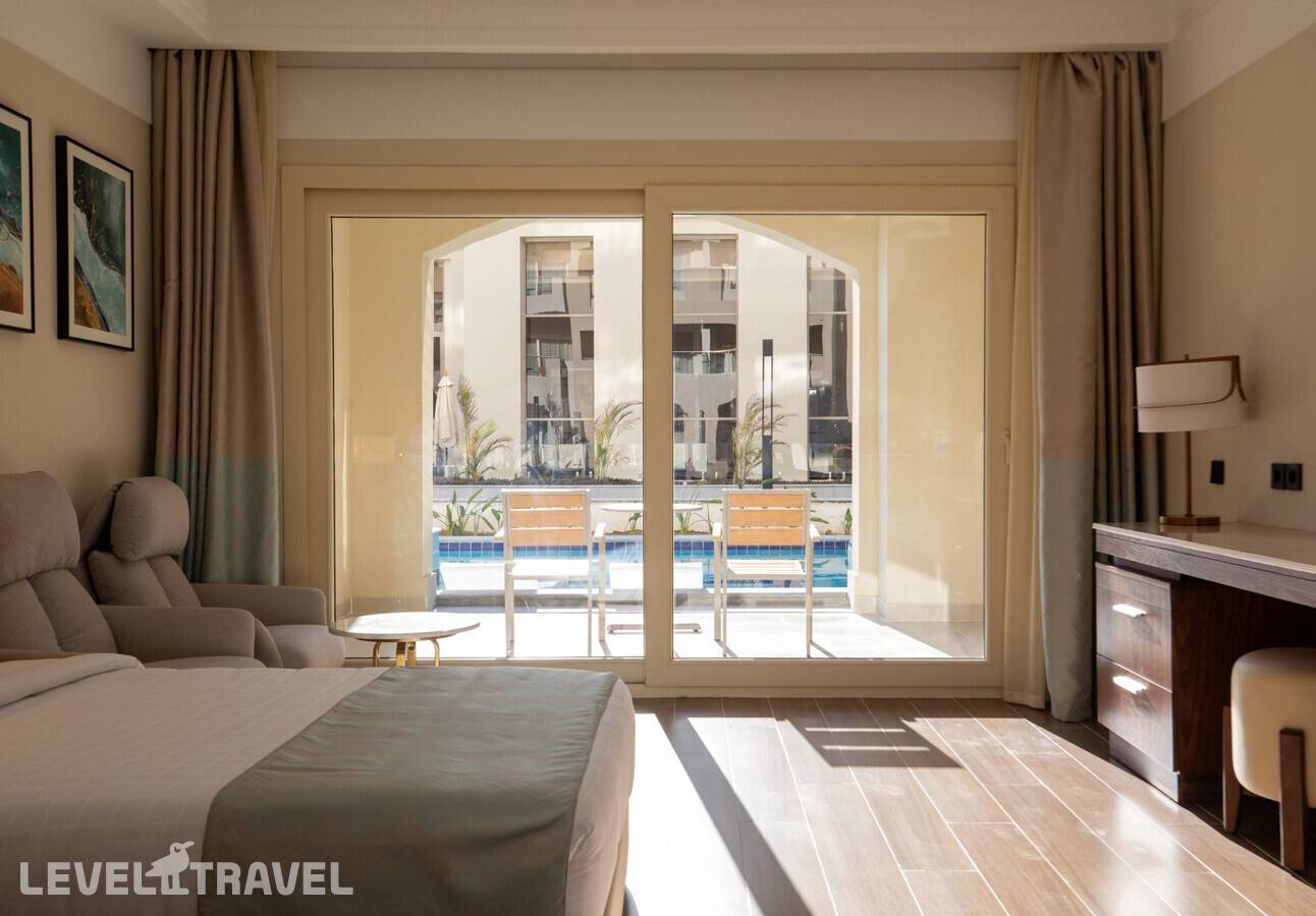 Номер с выходом к бассейну. Двуспальная кровать или две односпальные.