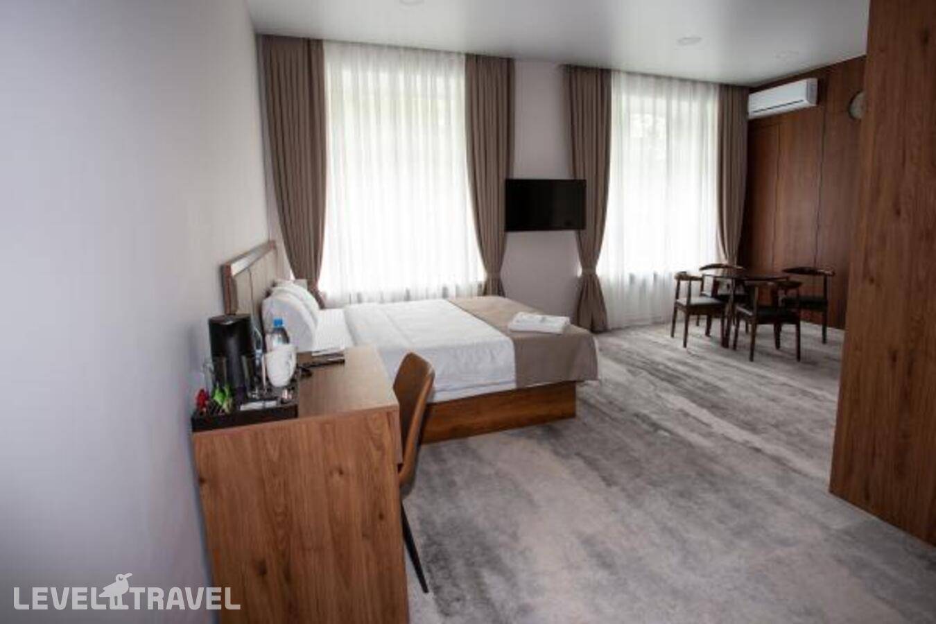 В распоряжении гостей 41 номер. Номерной фонд включает: Стандарт двухместный, Номер, оборудованный для МГН, роскошные номера Люкс с дополнительными удобствами для максимального комфорта, просторные и элегантные номера Джуниор сюит, идеальные для тех, кто ценит стиль и удобство. Оснащение: кондиционер, телевизор, чайник и холодильник. Номера категории эконом с общими удобствами, расположенными на этаже.