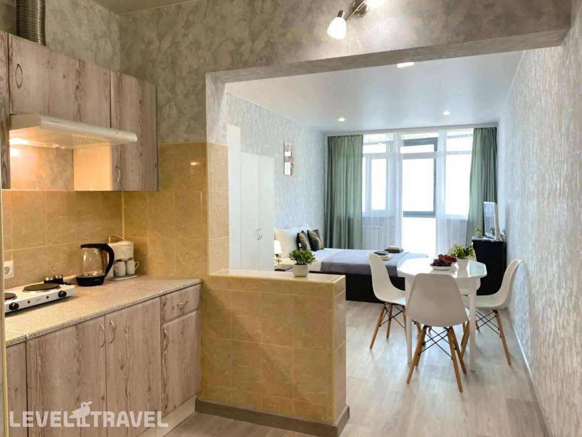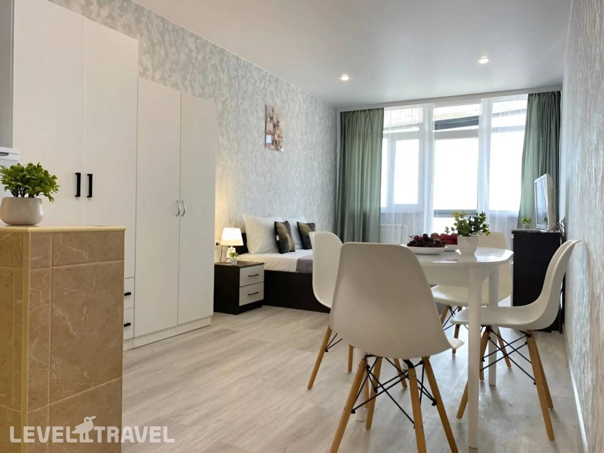 от 48 018 ₽Уютная студия с панорамным видом на море расположена в живописном районе Сочи, рядом с пляжем и парками. Просторное светлое пространство идеально подходит для комфортного отдыха у моря.