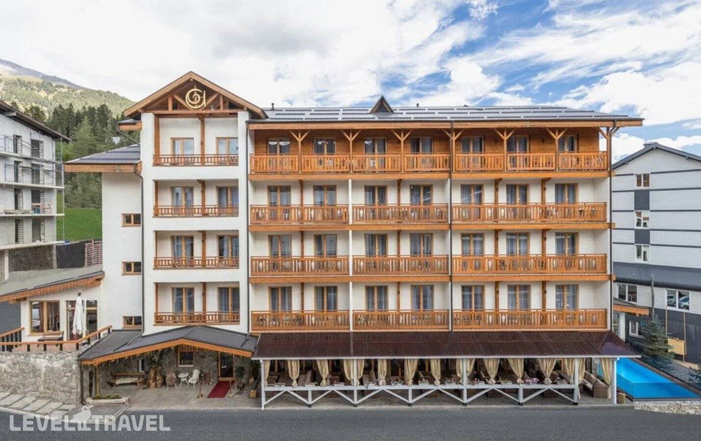 Расположен: в 213 км от аэропорта г. Минеральные Воды. Ближайший подъемник в 600 м. Состоит из: одного 5-этажного здания. Всего 37 номеров. Адрес: ул. Горная, д. 25, село Архыз, Карачаево-Черкесская Республика. Время заезда: 15:00 Время выезда: 12:00