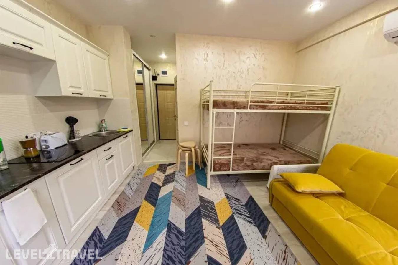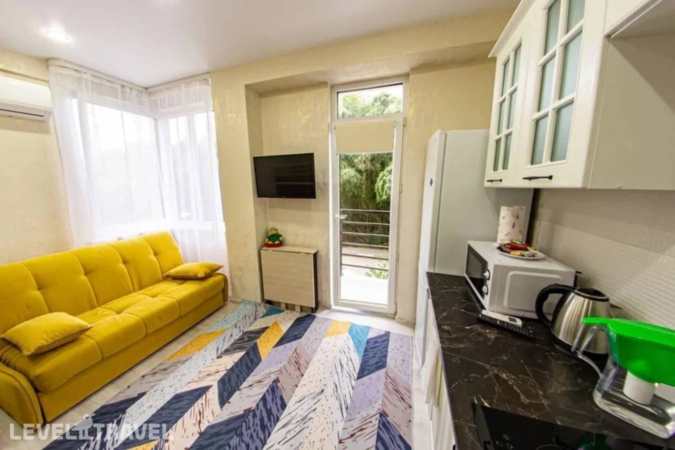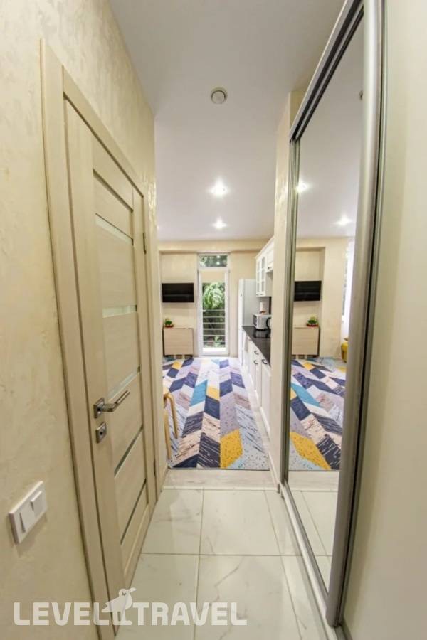 Небольшие апартаменты, но комфортные, свеженький ремонт и состояние, есть балкончик со столиком и стульчиками, всё исправно, есть всё необходимое. Расположение - нормальное, если вы понимаете где останавливаетесь. Самолётики шумят немного, но вы прямо под глиссадой живёте, должны понимать, до пляжей можно спокойно дойти пешком, в окрестностях есть магазины-кафе. Хорошо, чисто. Бесконтактное обслуживание. Всё понятно и быстро.