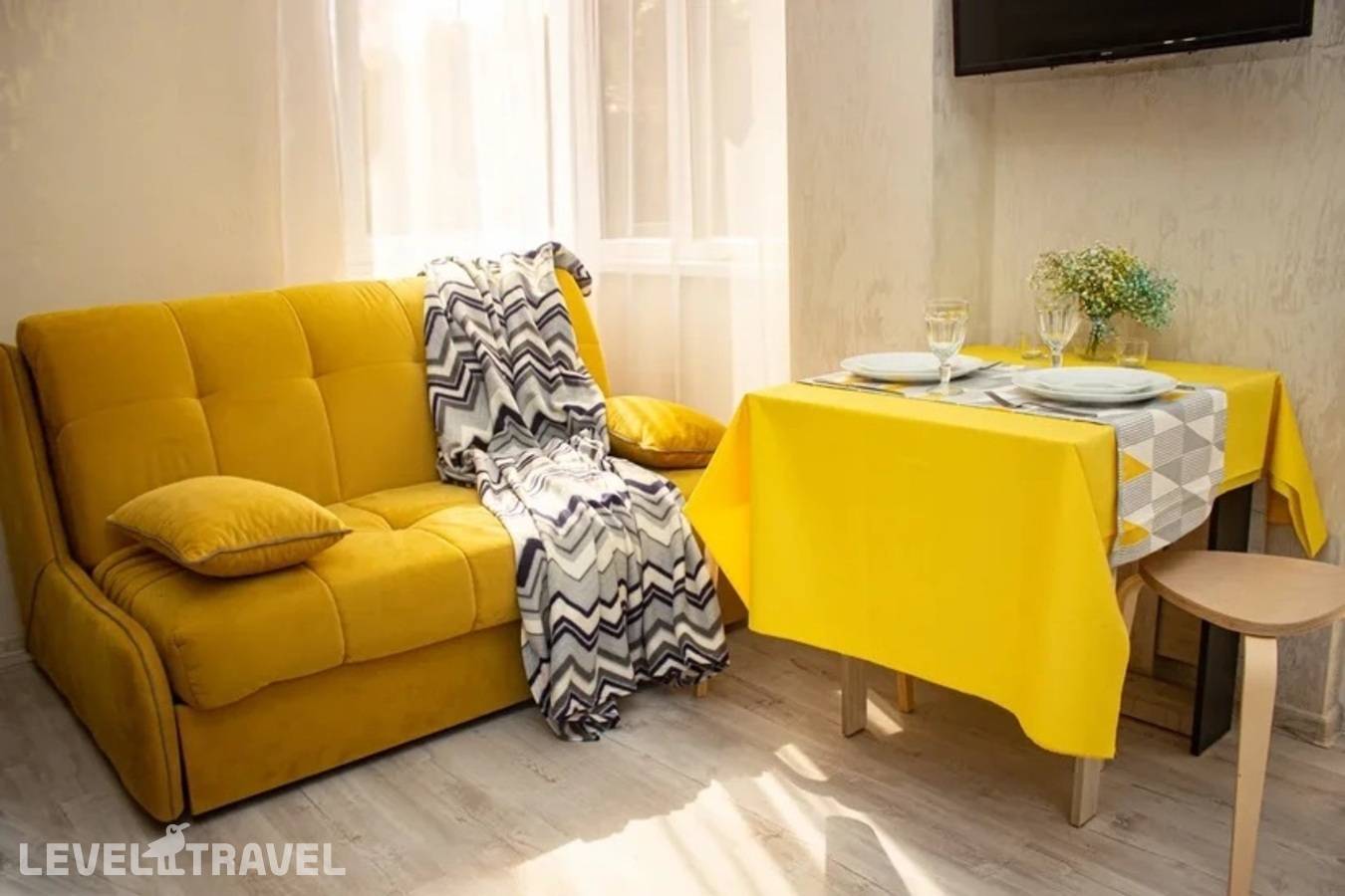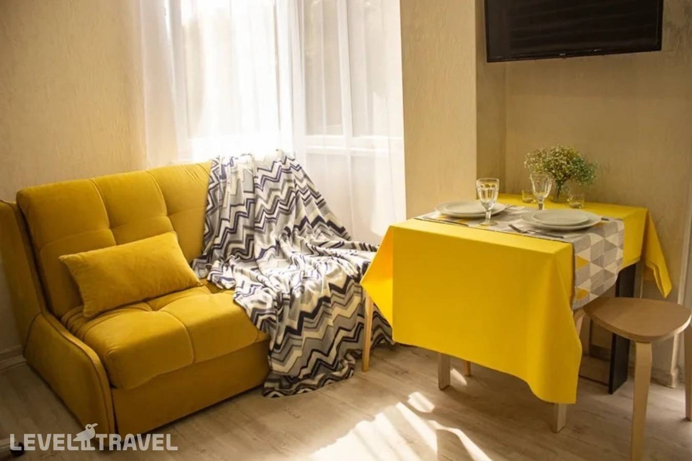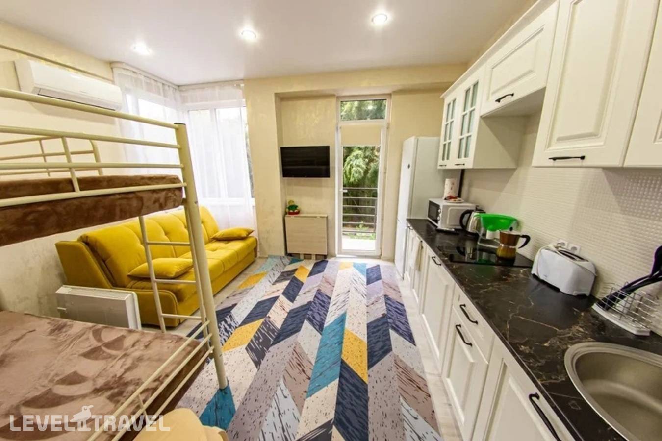 Небольшие апартаменты, но комфортные, свеженький ремонт и состояние, есть балкончик со столиком и стульчиками, всё исправно, есть всё необходимое. Расположение - нормальное, если вы понимаете где останавливаетесь. Самолётики шумят немного, но вы прямо под глиссадой живёте, должны понимать, до пляжей можно спокойно дойти пешком, в окрестностях есть магазины-кафе. Хорошо, чисто. Бесконтактное обслуживание. Всё понятно и быстро.
