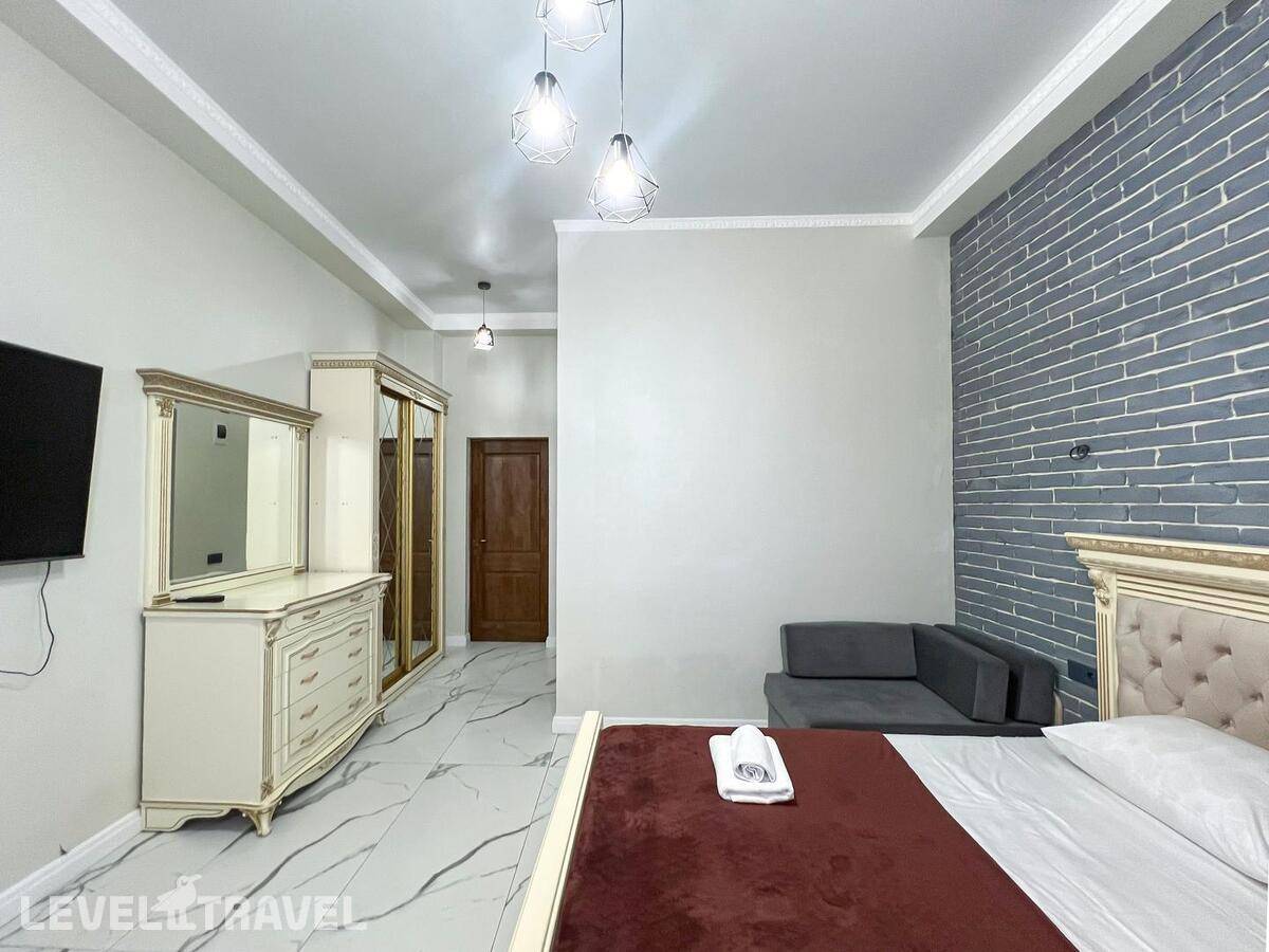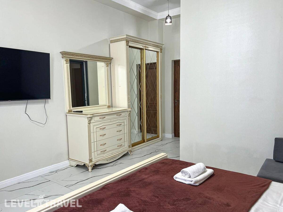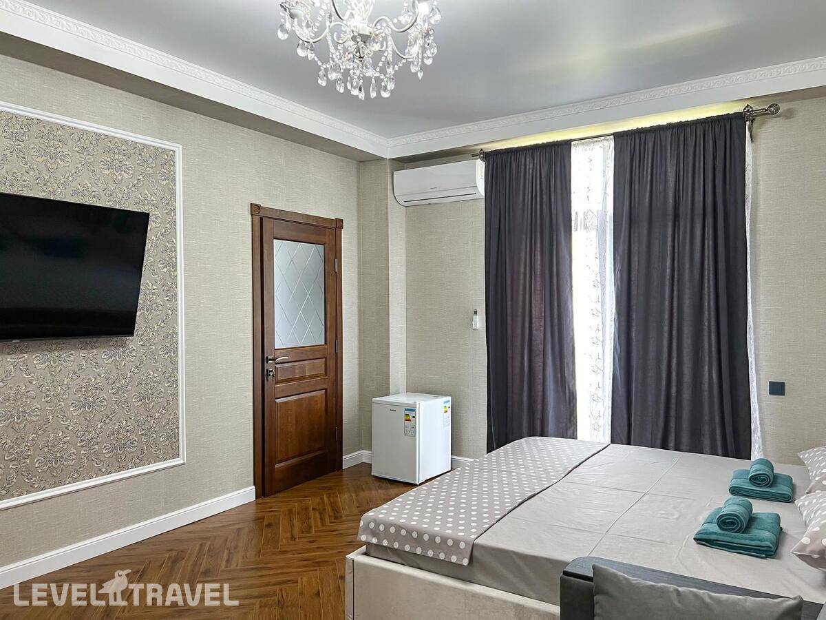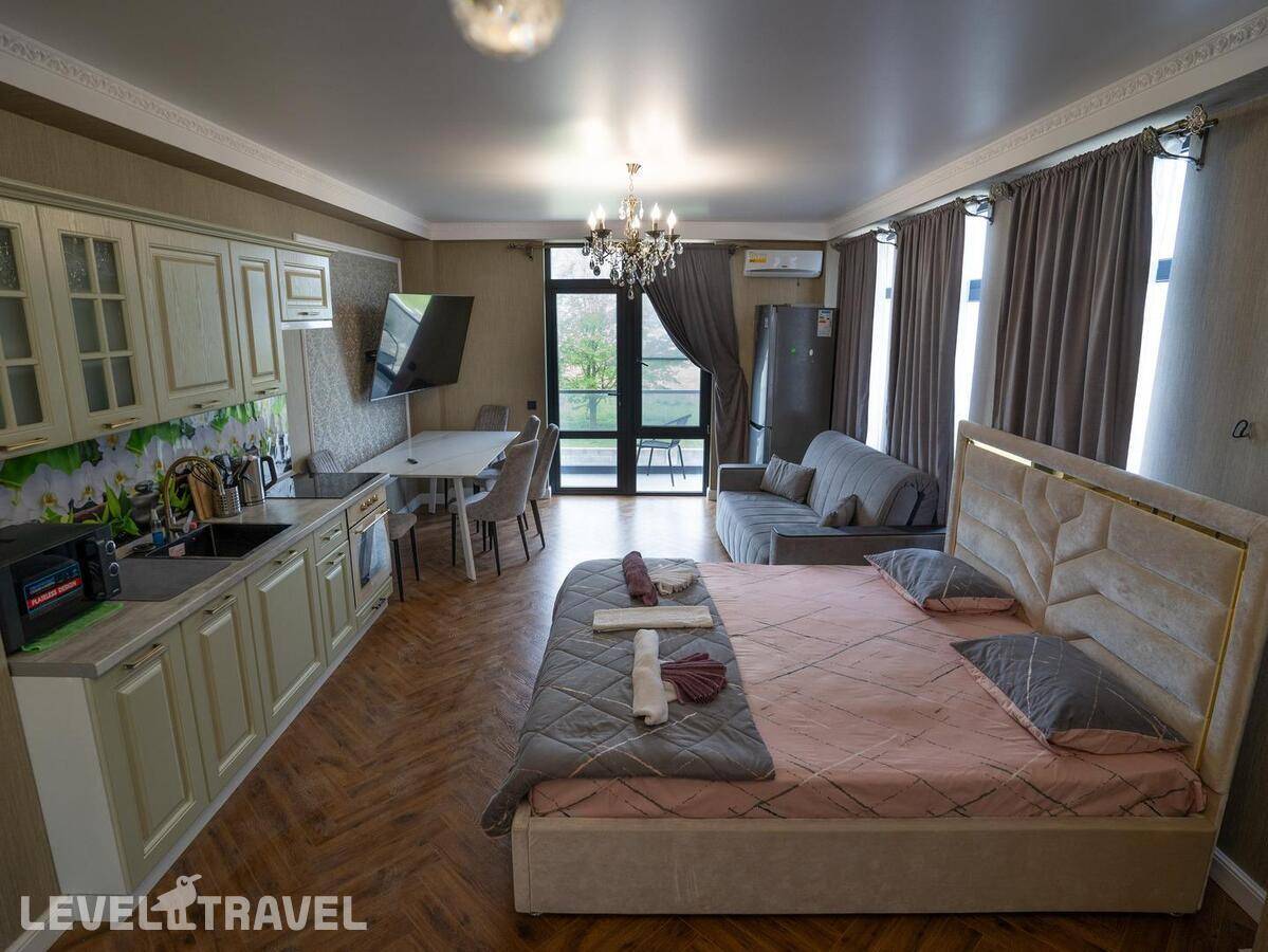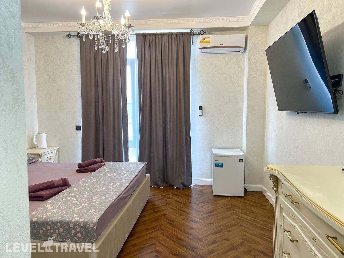 Заселение СТРОГО в 14.00!!! , даже если номер свободен. За 300 р\час нас заселили раньше. Гостевой туалет отсутствует, только в номерах. Номер с большими окнами, без москитных сеток, каждый вечер рой комаров, жучков, паучков. В маленькой комнате отсутствовало половина штор, т е можно было закрыть только половину окна, а вторая половина утопала в солнечных лучах. Матрасы ОЧЕНЬ плохие, спать невозможно, постоянно скатываешься вниз чувствуя все пружины, а по середине как горка. Кроме одного рулона туалетной бумаги не было ничего, ни мыла руки помыть, ни тряпки на кухне, полотенца, жидкости для мытья посуды. При входе в номере нет никого крючка или полки, чтоб положить ключи, повесить сумку. Веник один на весь этаж, который стоит в общем коридоре. Сыну достался раскладывающий диван, но без постельного белья и подушки, на вопрос где это? Милая девушка администратор ответила, что не положено, т к это дополнительное место, он должен спать с нами. Серьезно??? 14 летний подросток под 180 см должен спать с родителями на кровати. Хотя номер шестиместный! У меня был шок, первый раз с таким сталкиваюсь. По итогу она кому то позвонила и потом принесла постельное белье и подушку. Постельное белье не соответствует размерам, на кровать 160\200 дают 1,5 пододеяльник. Уборка плохая, мусор не выносят, На 7 день пришла менять белье недовольная женщина, чуть ли не через лупу просматривали простынь, наволочки, пододеяльники и полотенца. Одно не забрали, типо очень грязное, соответственно на одно полотенце оставили меньше. Я уже не стала портить настроение себе и сама его постирала. В день отъезда администратор принимала номер, она тоже все просматривала бельё, полотенца, только лупы не сватало. Сделала замечание, что стаканы стояли не на той полке. хорошо штраф не выписали... .Заглянула в ванну, туалет, под кровать, в холодильник и т д., Елена Летучая... Хорошо, при заселении увидели сломанный душ и микроволновка не грела, а то бы попали на штраф.