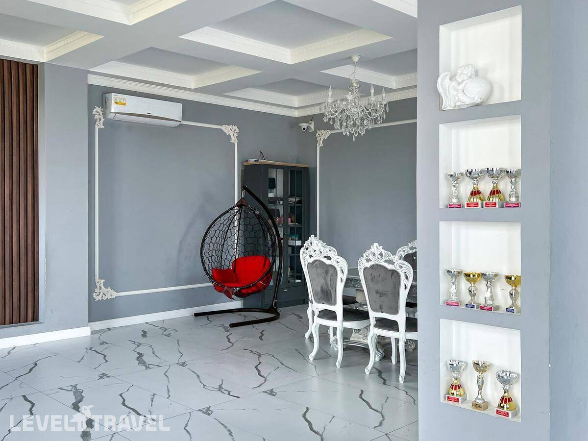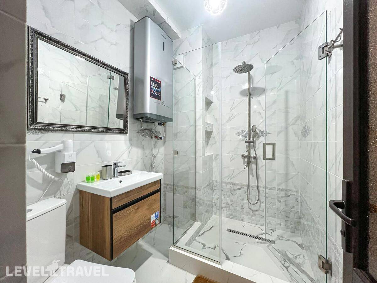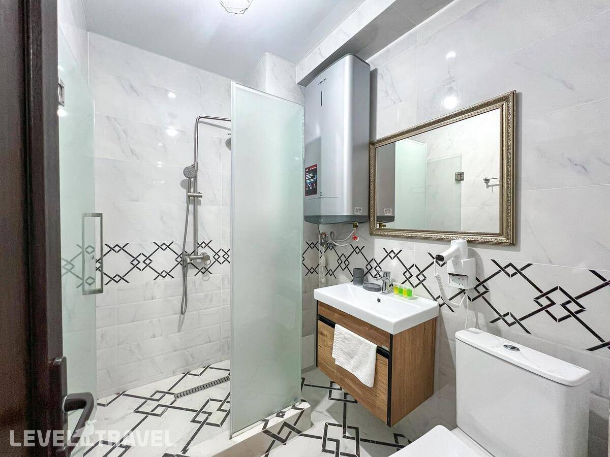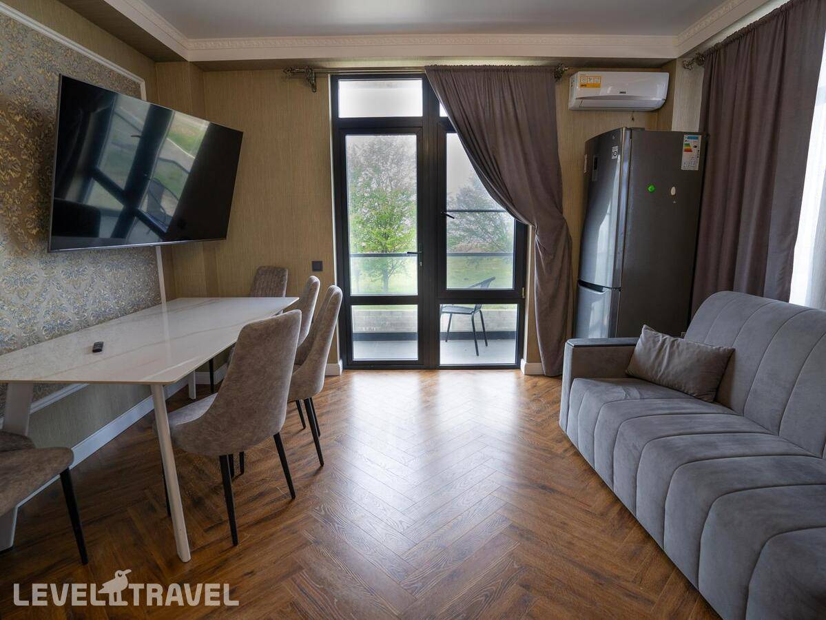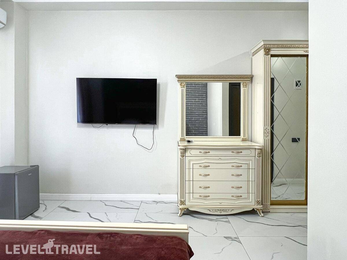 Заселение СТРОГО в 14.00!!! , даже если номер свободен. За 300 р\час нас заселили раньше. Гостевой туалет отсутствует, только в номерах. Номер с большими окнами, без москитных сеток, каждый вечер рой комаров, жучков, паучков. В маленькой комнате отсутствовало половина штор, т е можно было закрыть только половину окна, а вторая половина утопала в солнечных лучах. Матрасы ОЧЕНЬ плохие, спать невозможно, постоянно скатываешься вниз чувствуя все пружины, а по середине как горка. Кроме одного рулона туалетной бумаги не было ничего, ни мыла руки помыть, ни тряпки на кухне, полотенца, жидкости для мытья посуды. При входе в номере нет никого крючка или полки, чтоб положить ключи, повесить сумку. Веник один на весь этаж, который стоит в общем коридоре. Сыну достался раскладывающий диван, но без постельного белья и подушки, на вопрос где это? Милая девушка администратор ответила, что не положено, т к это дополнительное место, он должен спать с нами. Серьезно??? 14 летний подросток под 180 см должен спать с родителями на кровати. Хотя номер шестиместный! У меня был шок, первый раз с таким сталкиваюсь. По итогу она кому то позвонила и потом принесла постельное белье и подушку. Постельное белье не соответствует размерам, на кровать 160\200 дают 1,5 пододеяльник. Уборка плохая, мусор не выносят, На 7 день пришла менять белье недовольная женщина, чуть ли не через лупу просматривали простынь, наволочки, пододеяльники и полотенца. Одно не забрали, типо очень грязное, соответственно на одно полотенце оставили меньше. Я уже не стала портить настроение себе и сама его постирала. В день отъезда администратор принимала номер, она тоже все просматривала бельё, полотенца, только лупы не сватало. Сделала замечание, что стаканы стояли не на той полке. хорошо штраф не выписали... .Заглянула в ванну, туалет, под кровать, в холодильник и т д., Елена Летучая... Хорошо, при заселении увидели сломанный душ и микроволновка не грела, а то бы попали на штраф.