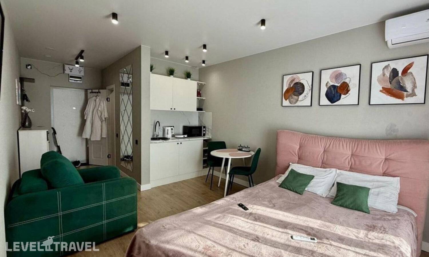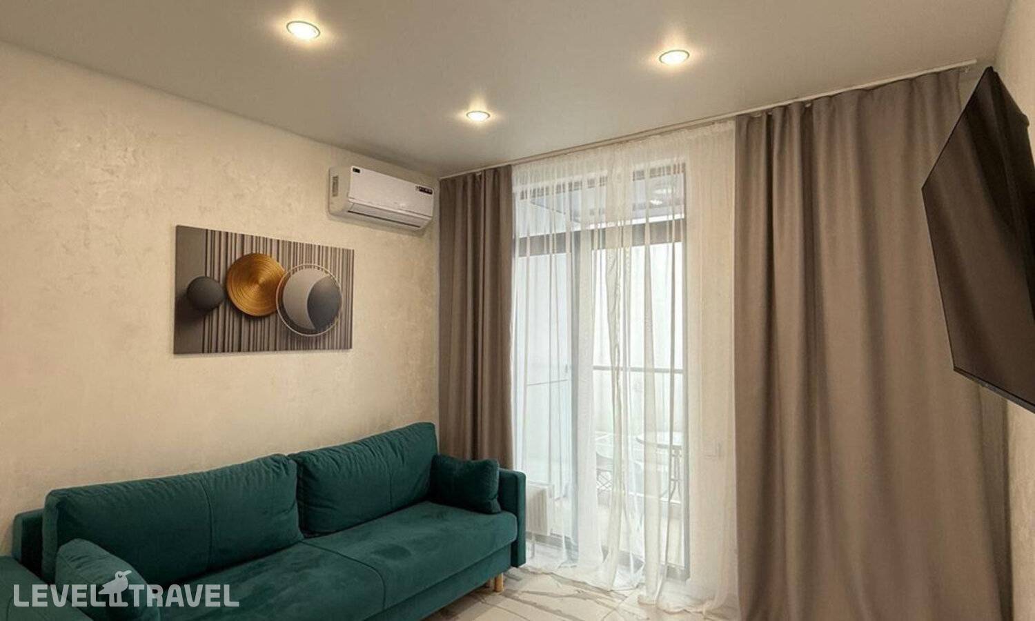 от 23 043 ₽Апартаменты расположены в микрорайоне Бытха недалеко от центра Сочи. Поблизости Сочинский дендрарий, что удобно для прогулок и отдыха у моря. Подойдут для компании или семьи, планирующих сочетать пляжный отдых с посещением городских достопримечательностей.