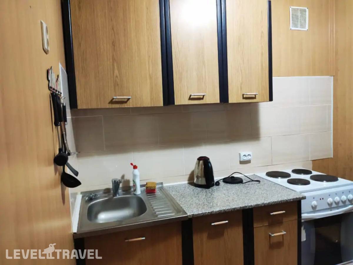 10 минут пешком до подъёмника. Шли сразу в горнолыжных ботинках. Да и вообще город маленький. До любой части города от дома не более 10-15 минут Это был последний свободный вариант на наши даты пребывания. И изначально, исходя из фотографий, готовились к худшему. Однако по приезду были приятно удивлены. Всё чисто. Видимо недавно был косметический ремонт, судя по свежим обоям. Хорошее постельное белье и полотенца по 2 шт. на каждого. Подушки на любителя. Матрас вполне нормальный. Дети на диване спали. Они не привередливые. Спали хорошо. В ванной даже порошок для стиралки был. С водой проблем не было, хороший напор и нормальная регулировка. Новые скатерть и губка для мытья посуды. Чистящие средства. Единственное, не хватало столовых приборов на четверых. Нормальный вариант для двух взрослых с детьми. Для четверых взрослых будет тесновато. Проводится генеральная уборка после отъезда Больше всего понравился подход и отношен е управляющего апартаментами. Помог с ранним заездом и поздним выездом, при том, что в день выезда должны были заезжать уже новые гости. Инициативно рассказал о всех нюансах горнолыжного курорта, достопримечательностях и особенностях города. Вообще, как нам показалось, все местные жители отличаются повышенной доброжелательностью и радушием.